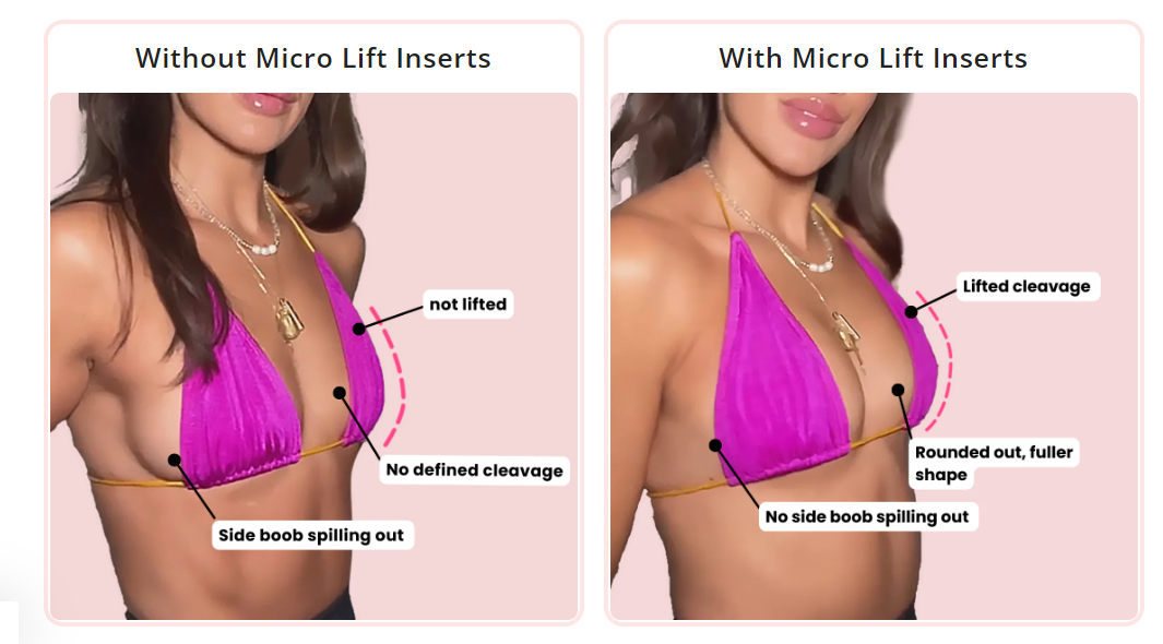 BOOMBA 胸墊可立即提升多達 2 個cup size。產品防水防汗,不管在泳池派對還是在陽光明媚的日子裡都可牢固實用。