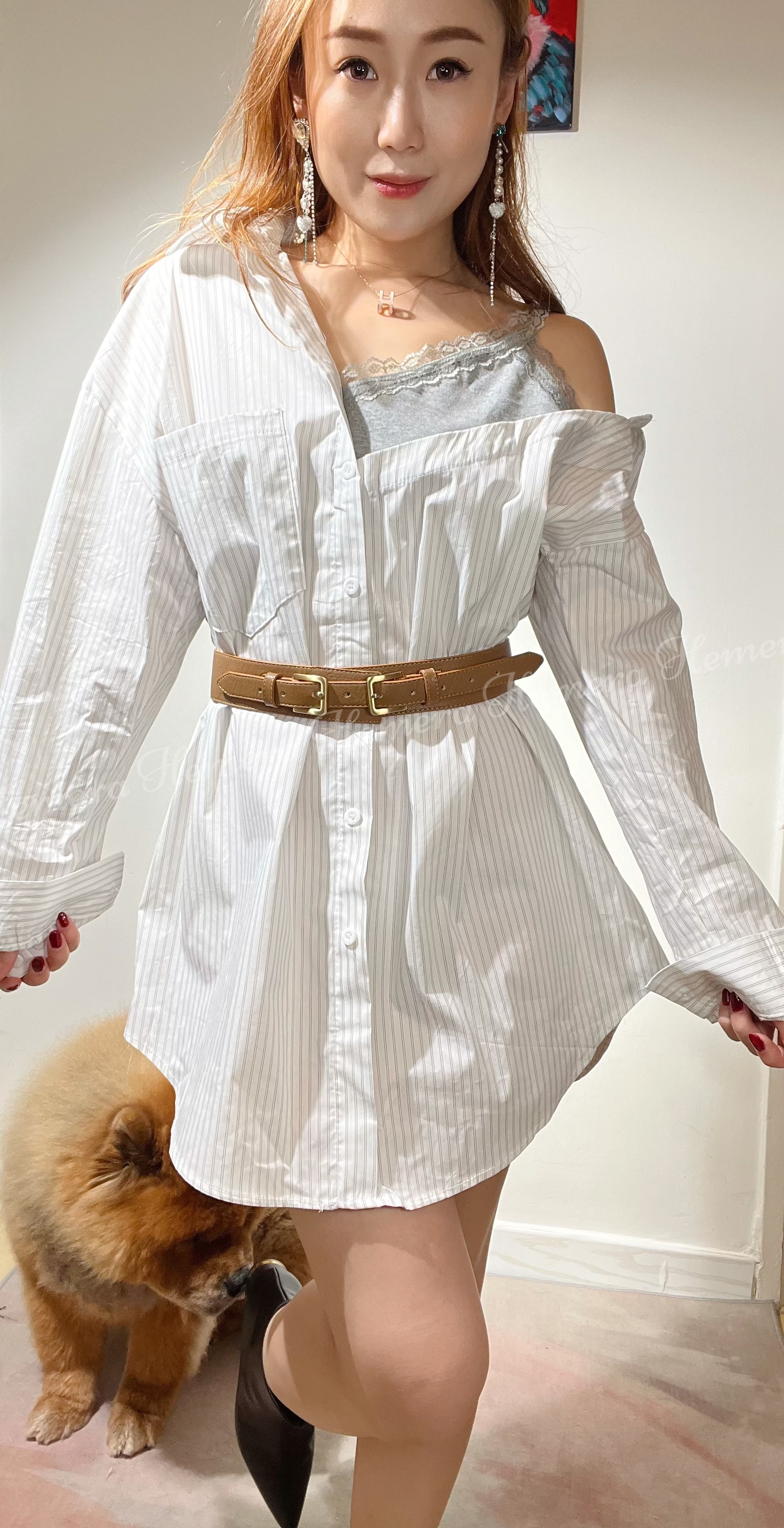 Color:White/Grey Stripe(Displayed on model)/Blue Strip