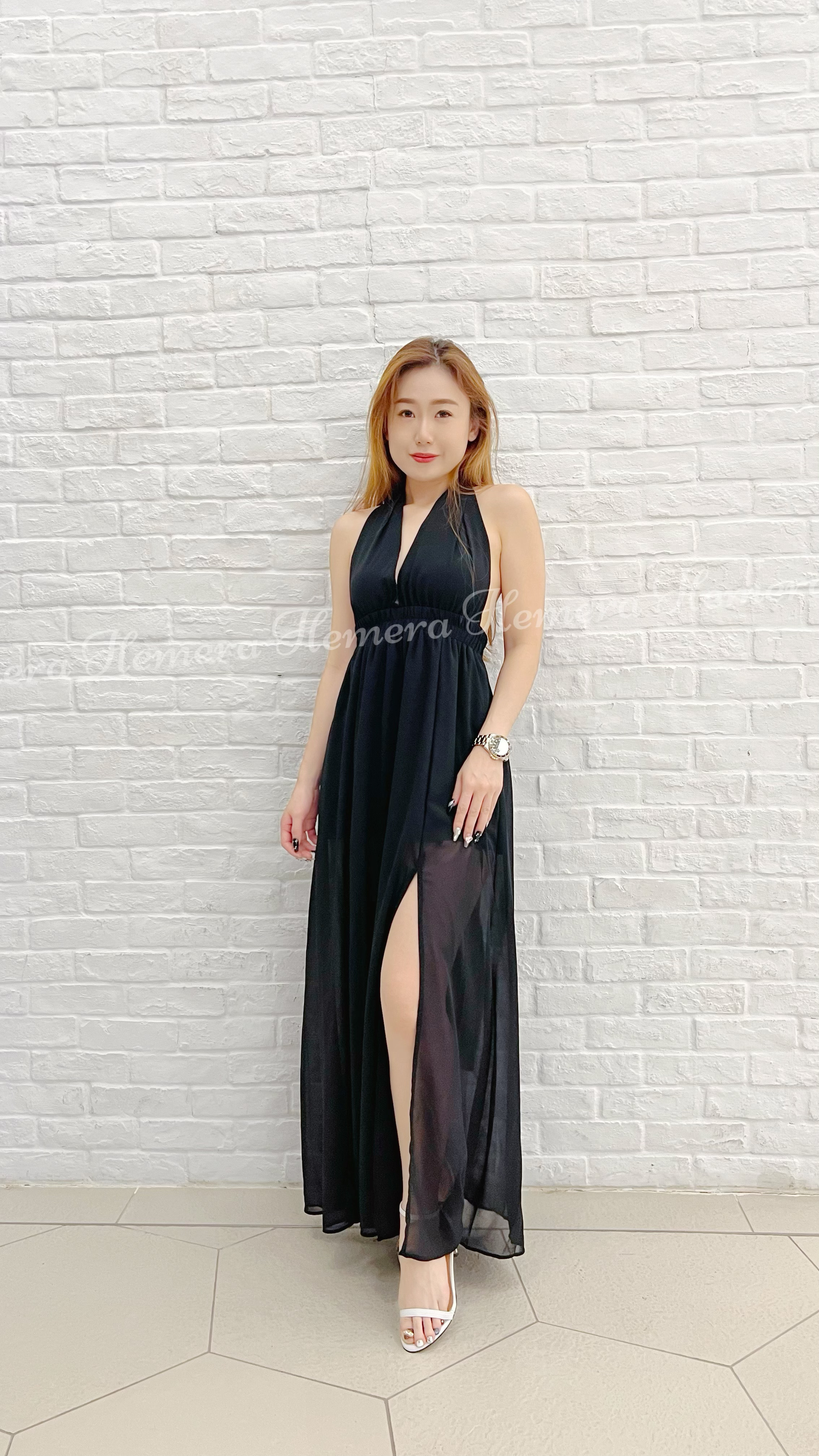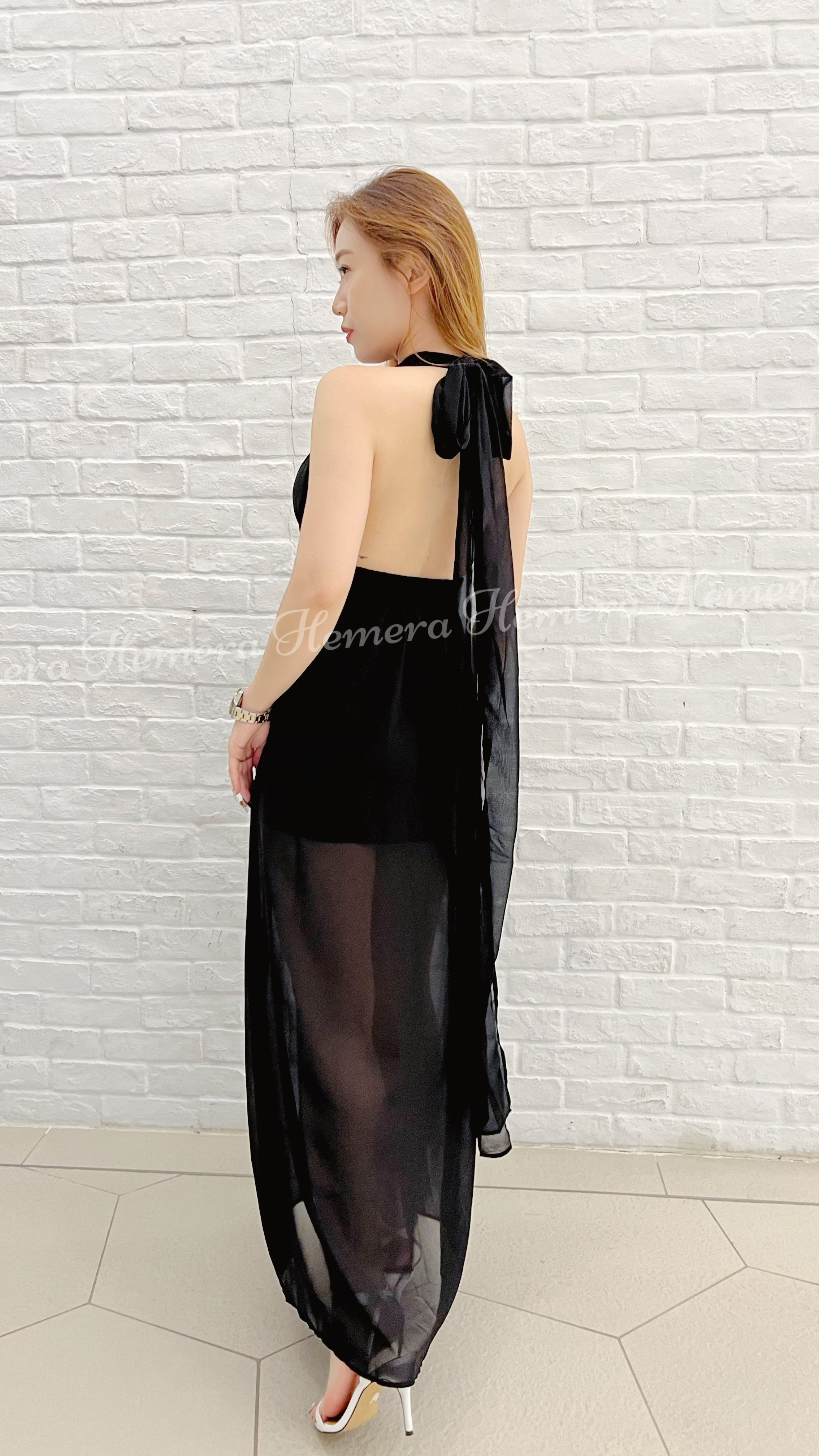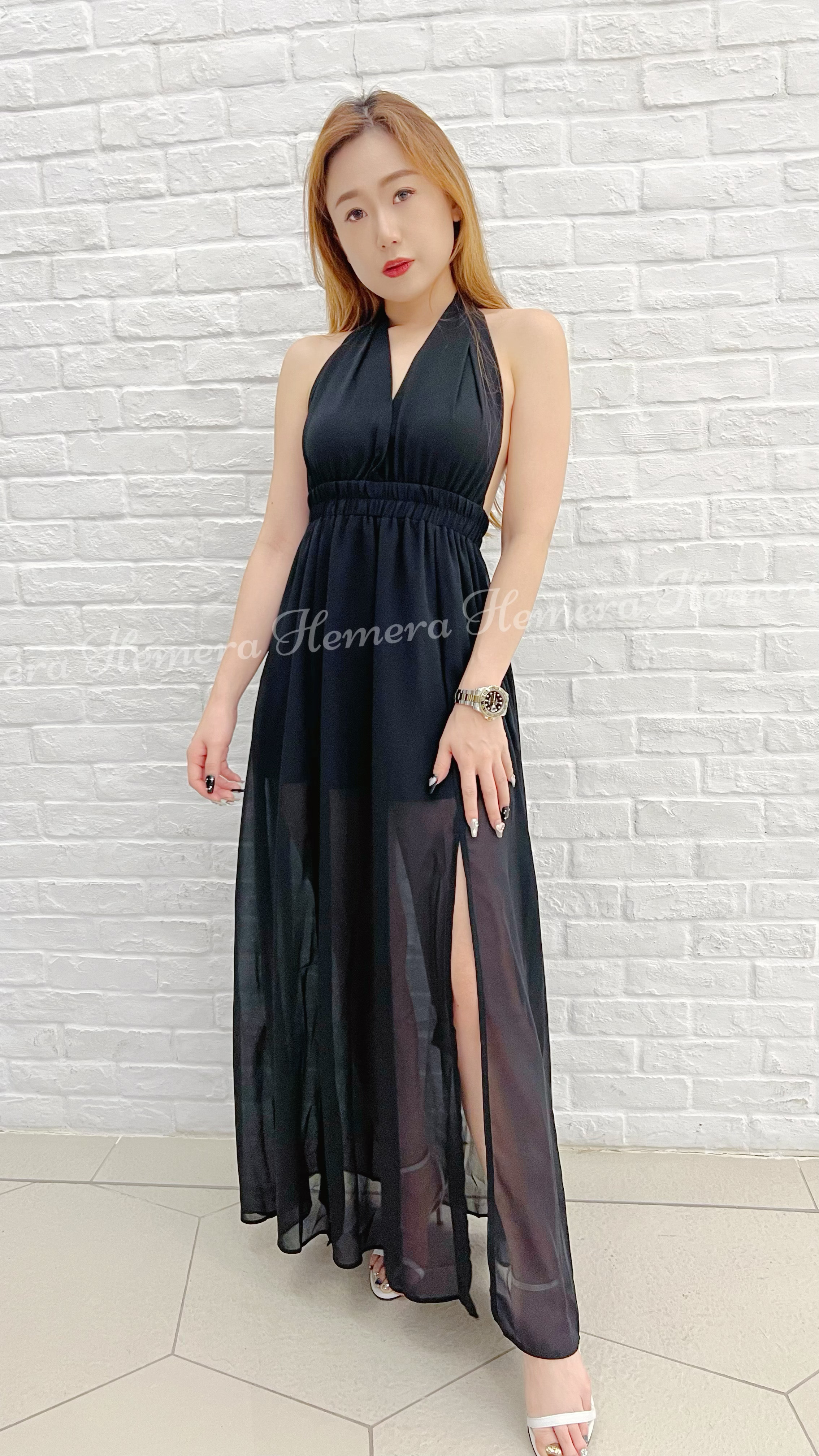 DR23S0729 大露背綁有雪紡開叉裙