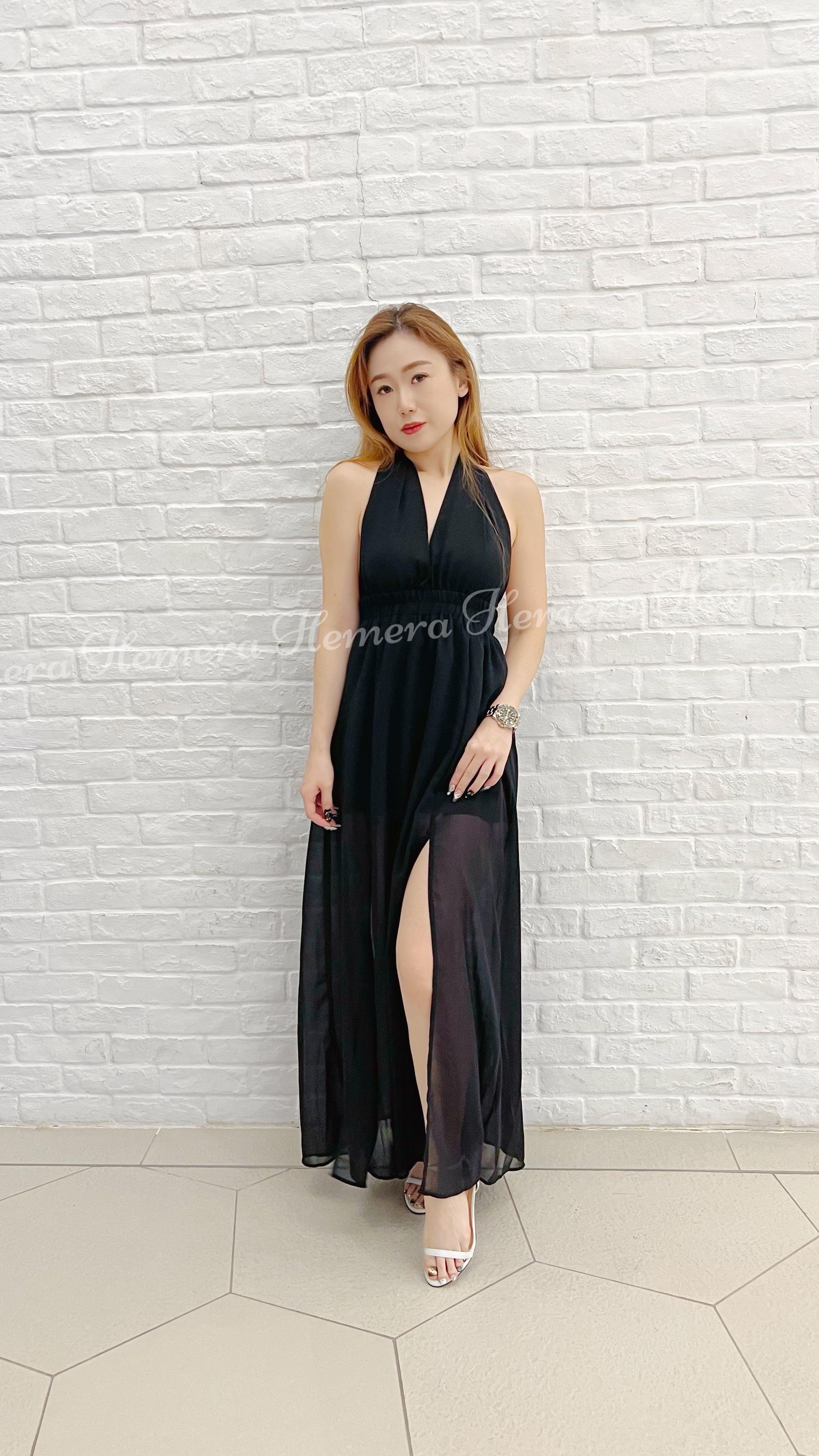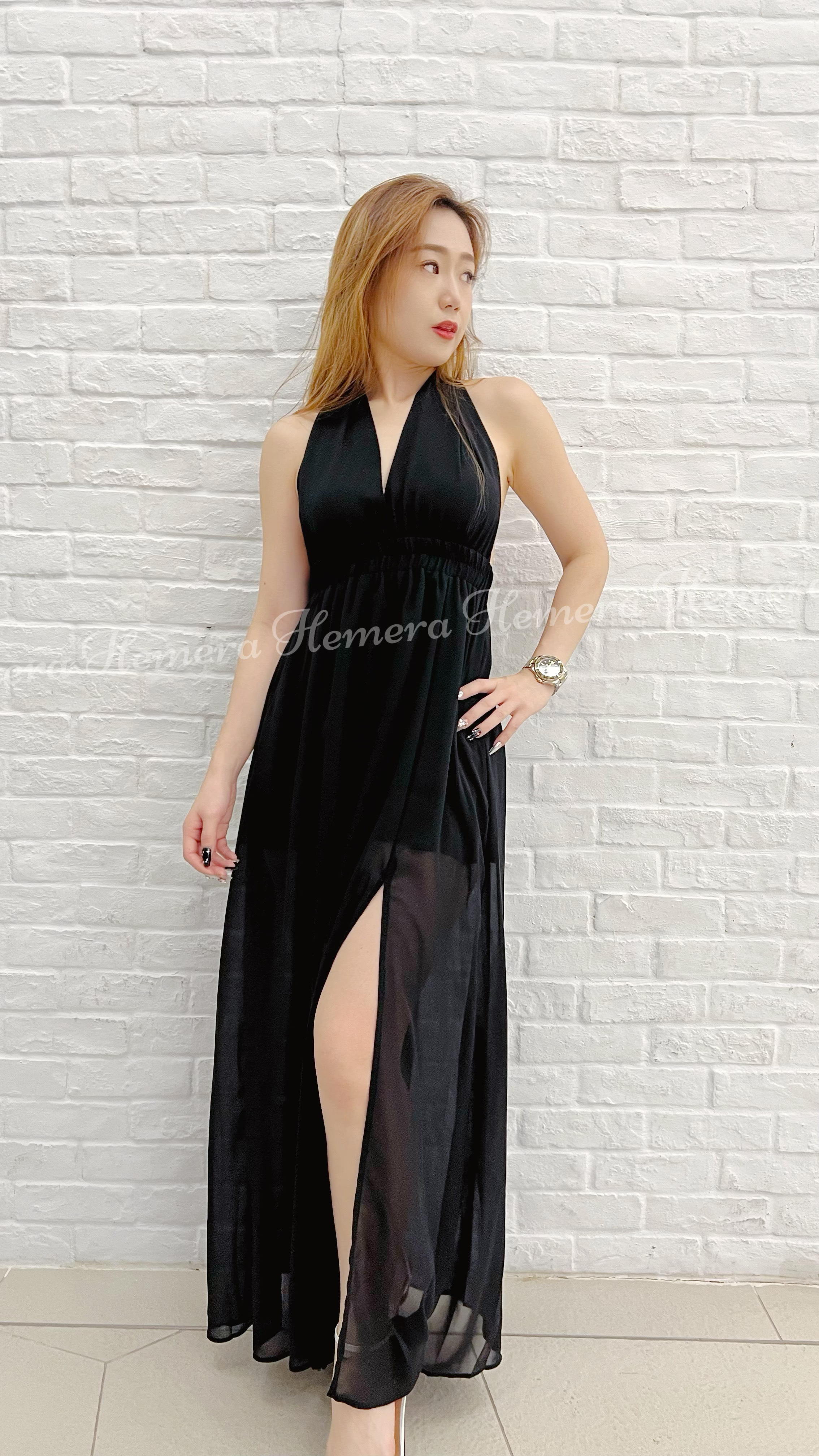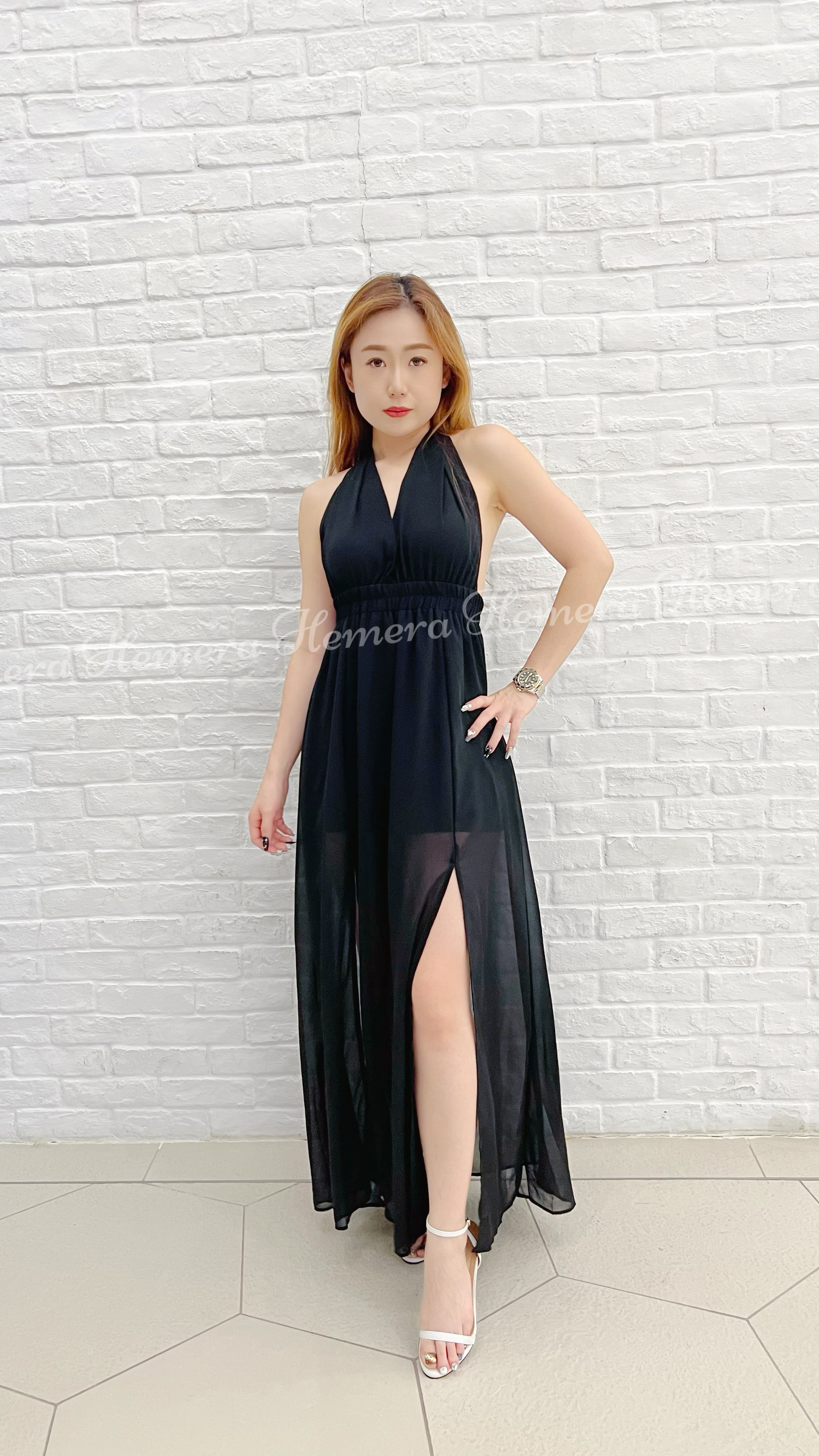 DR23S0729 大露背綁有雪紡開叉裙