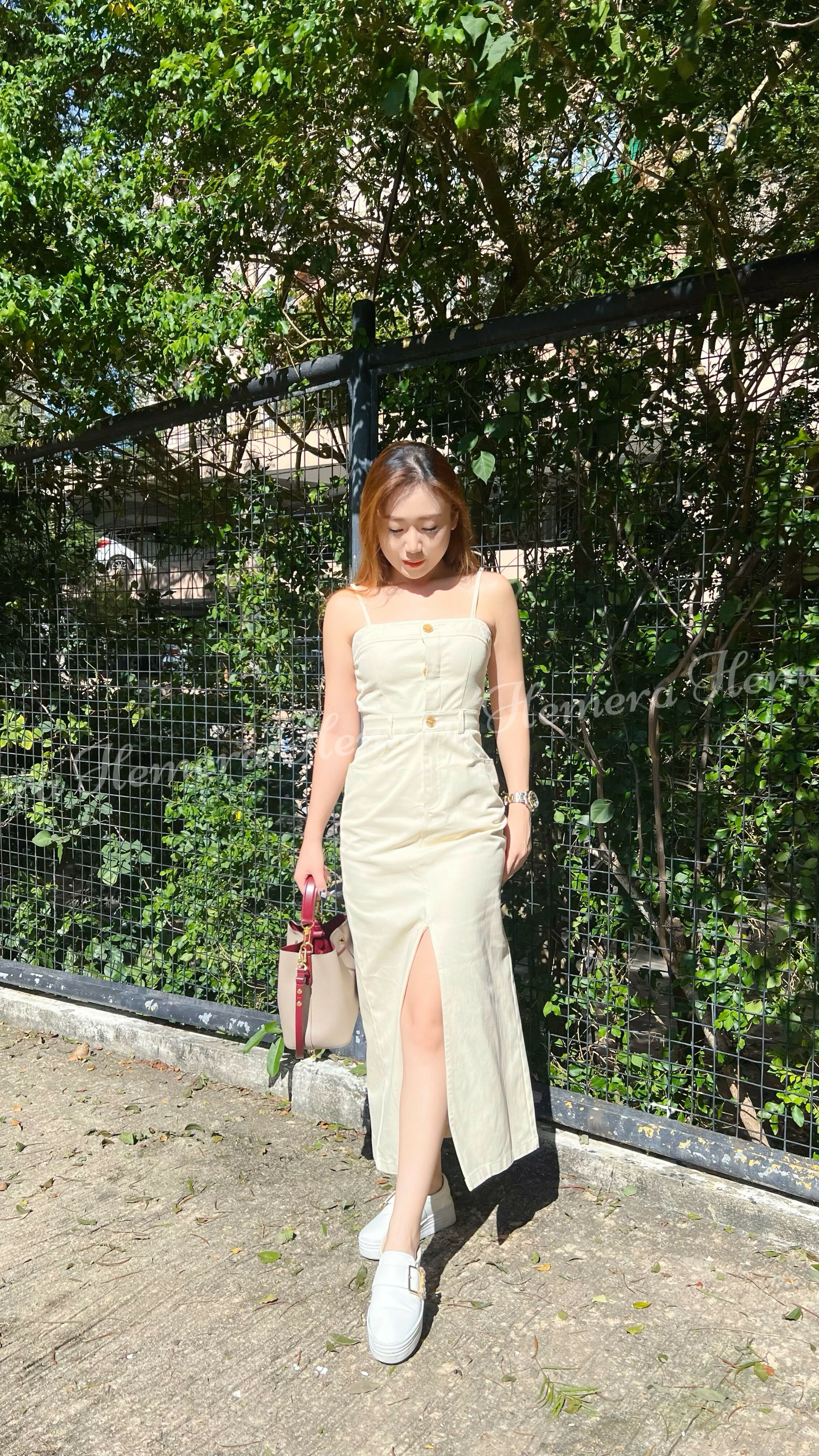 DR23S0919 牛仔吊帶前開叉連身裙