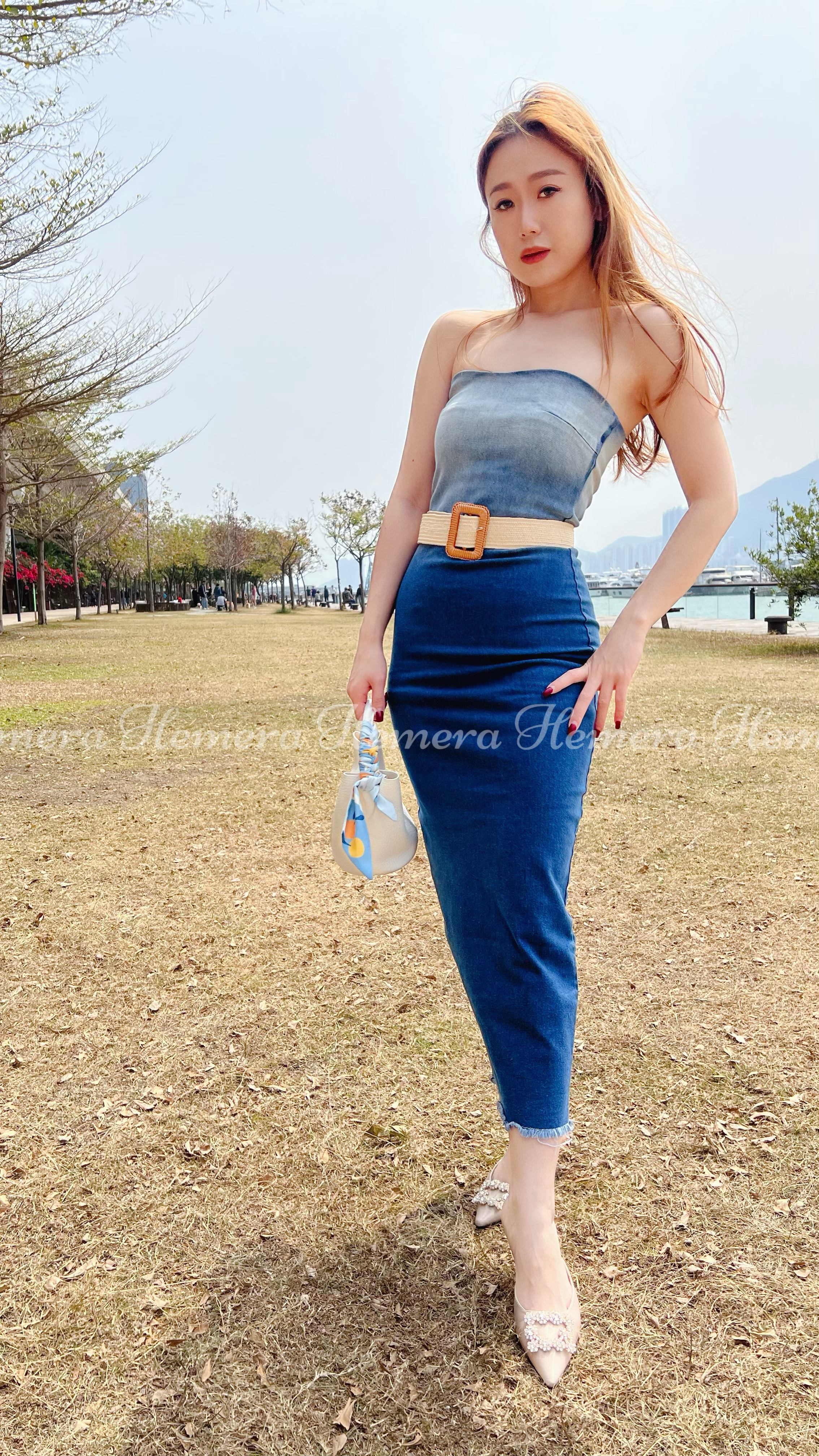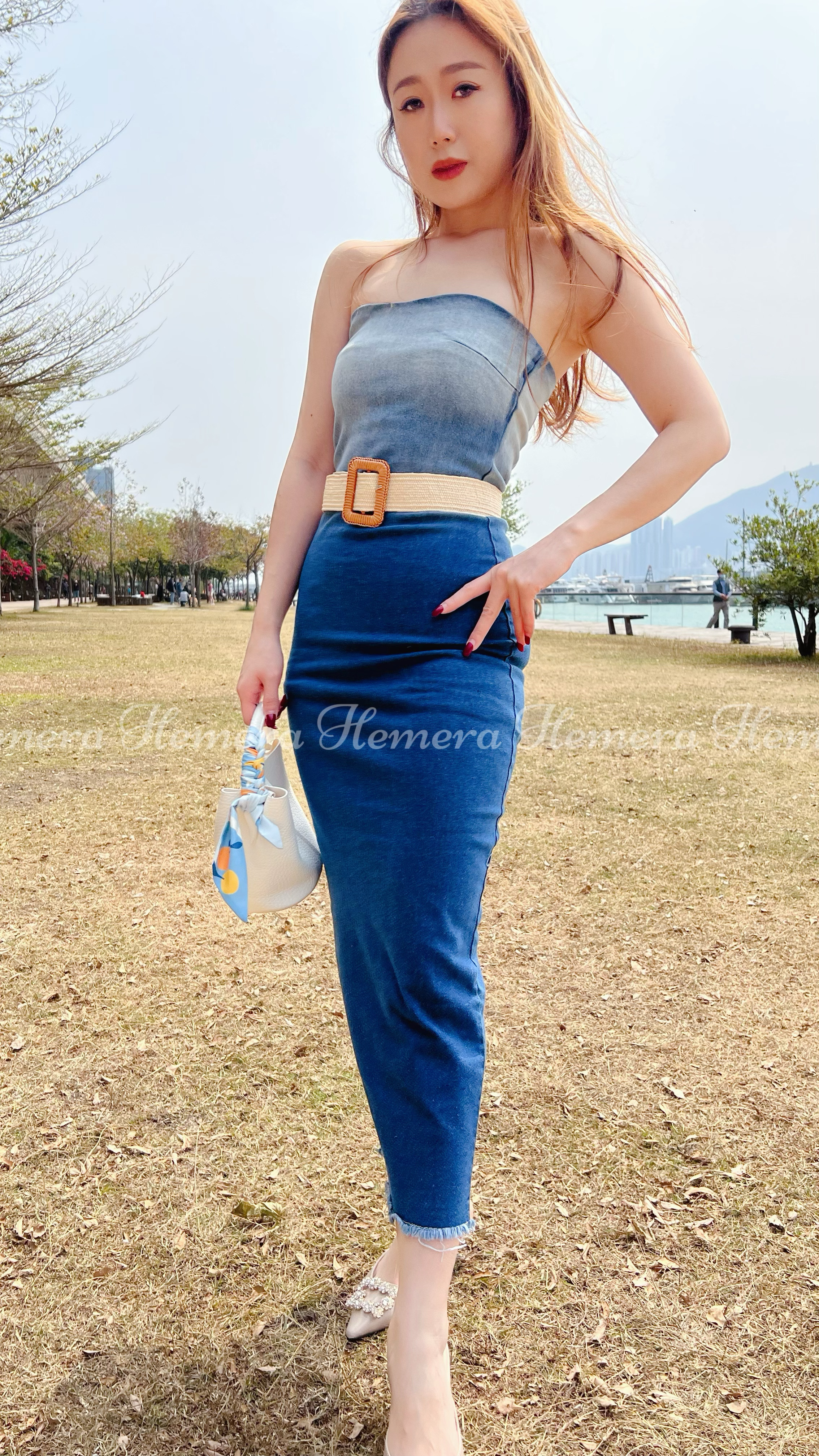 佢成條牛仔連身裙都有彈性~仲有好勁既塑身級數