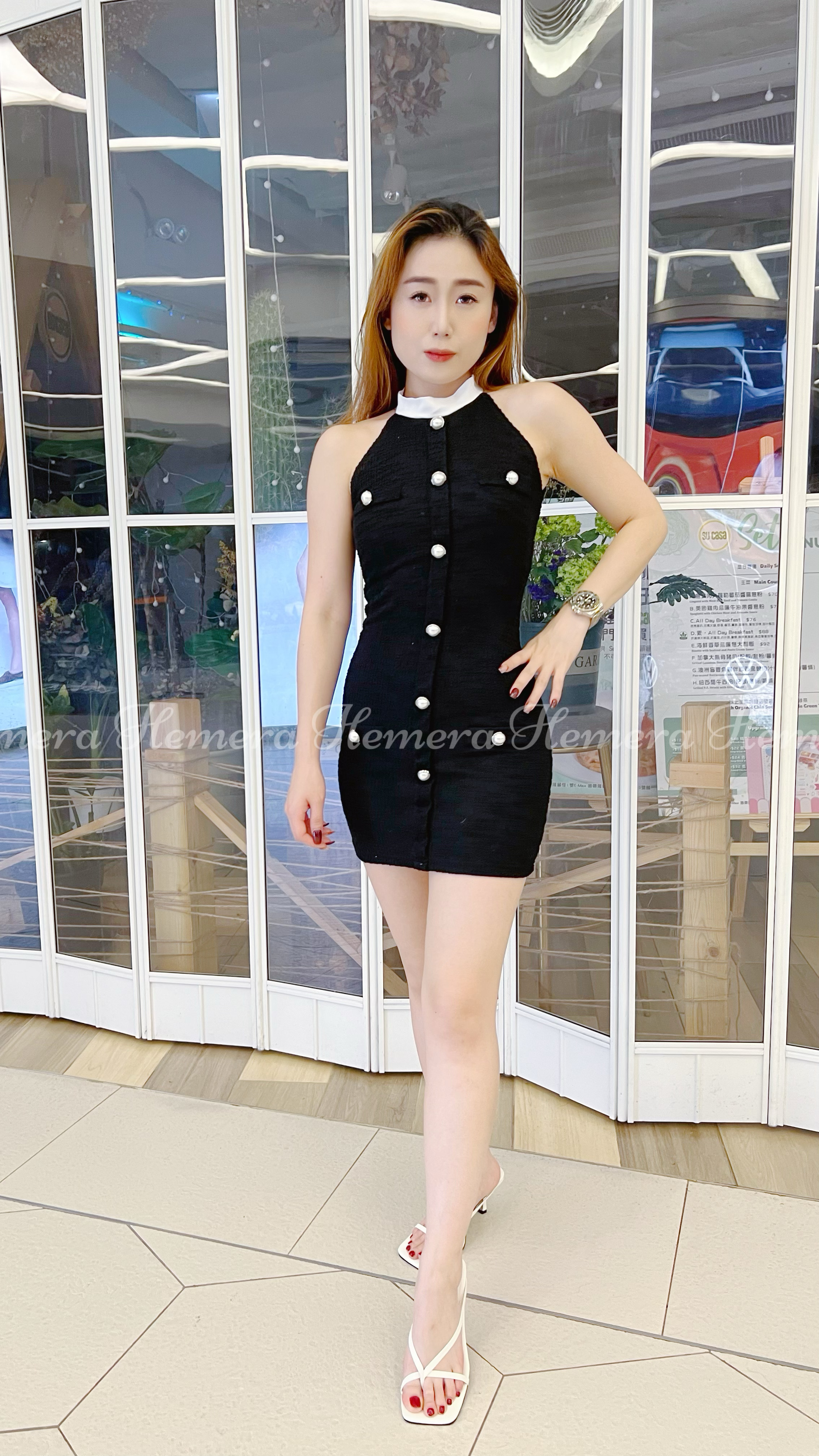 經典小香雙拼色掛頸連身裙
