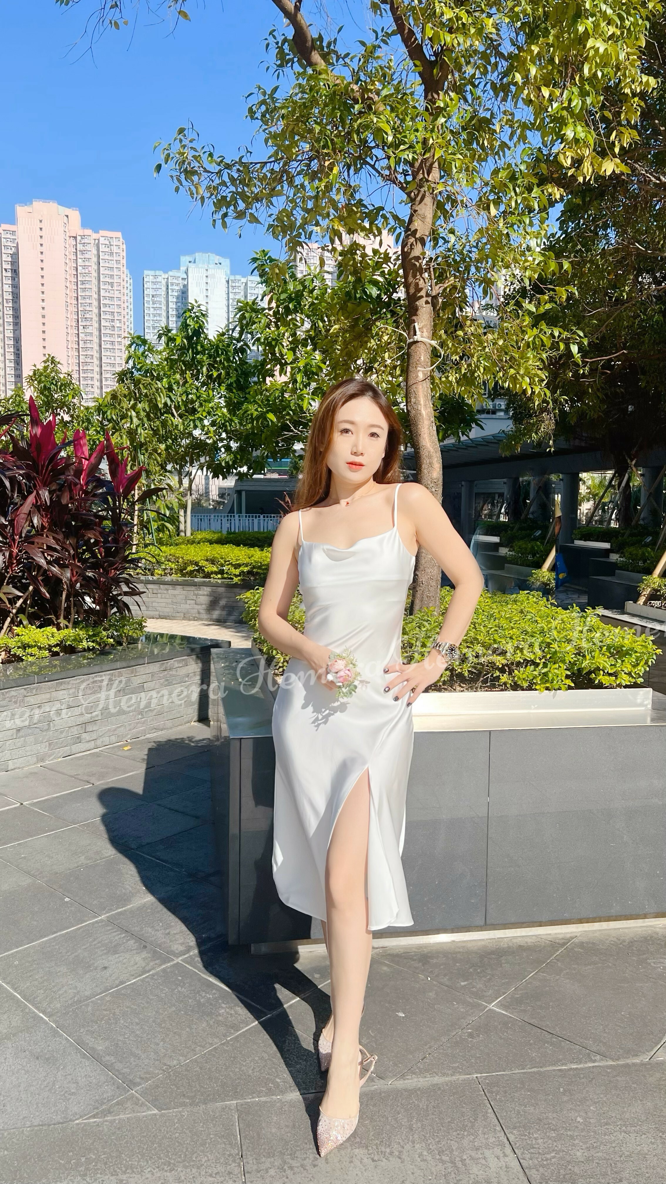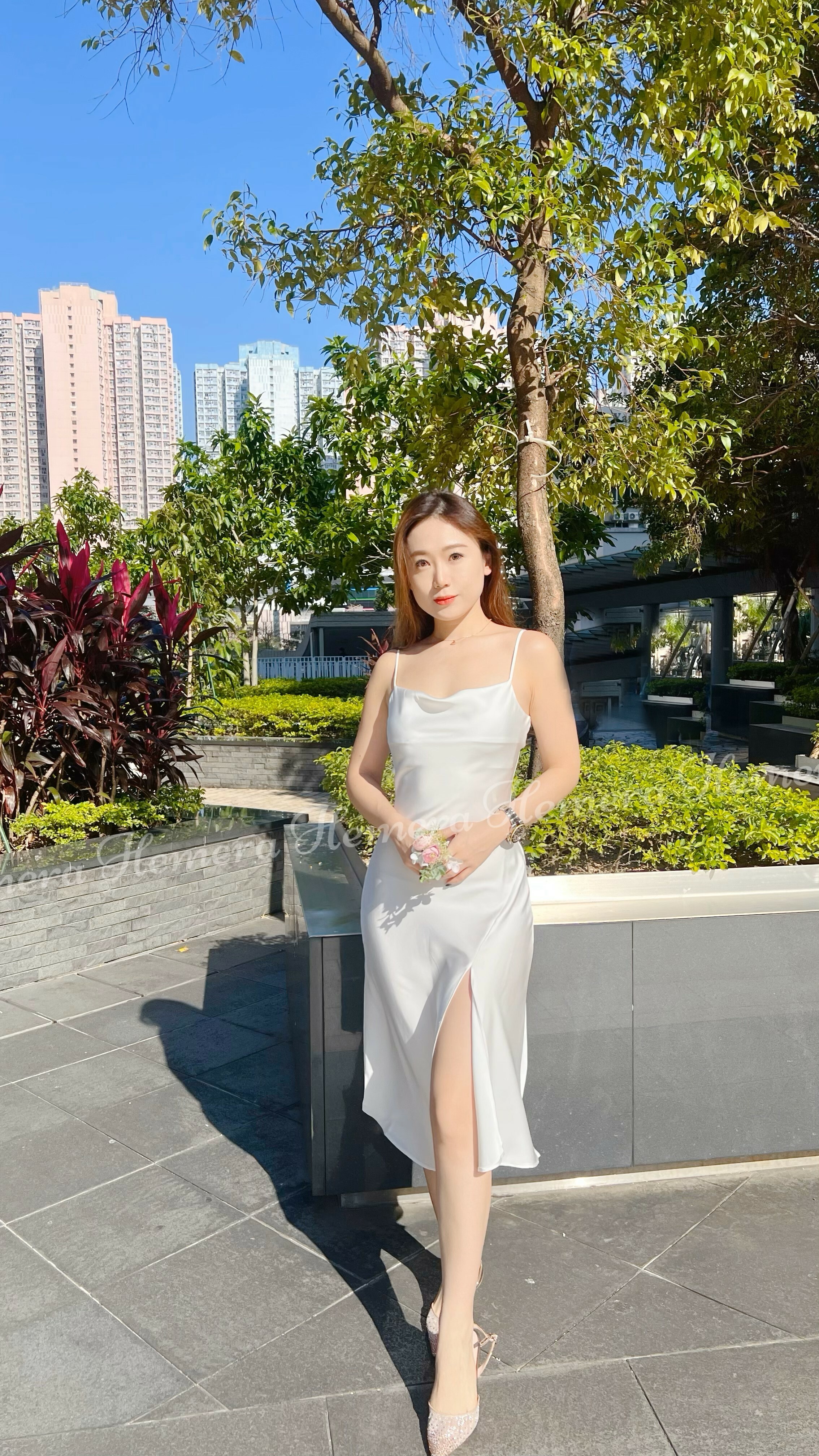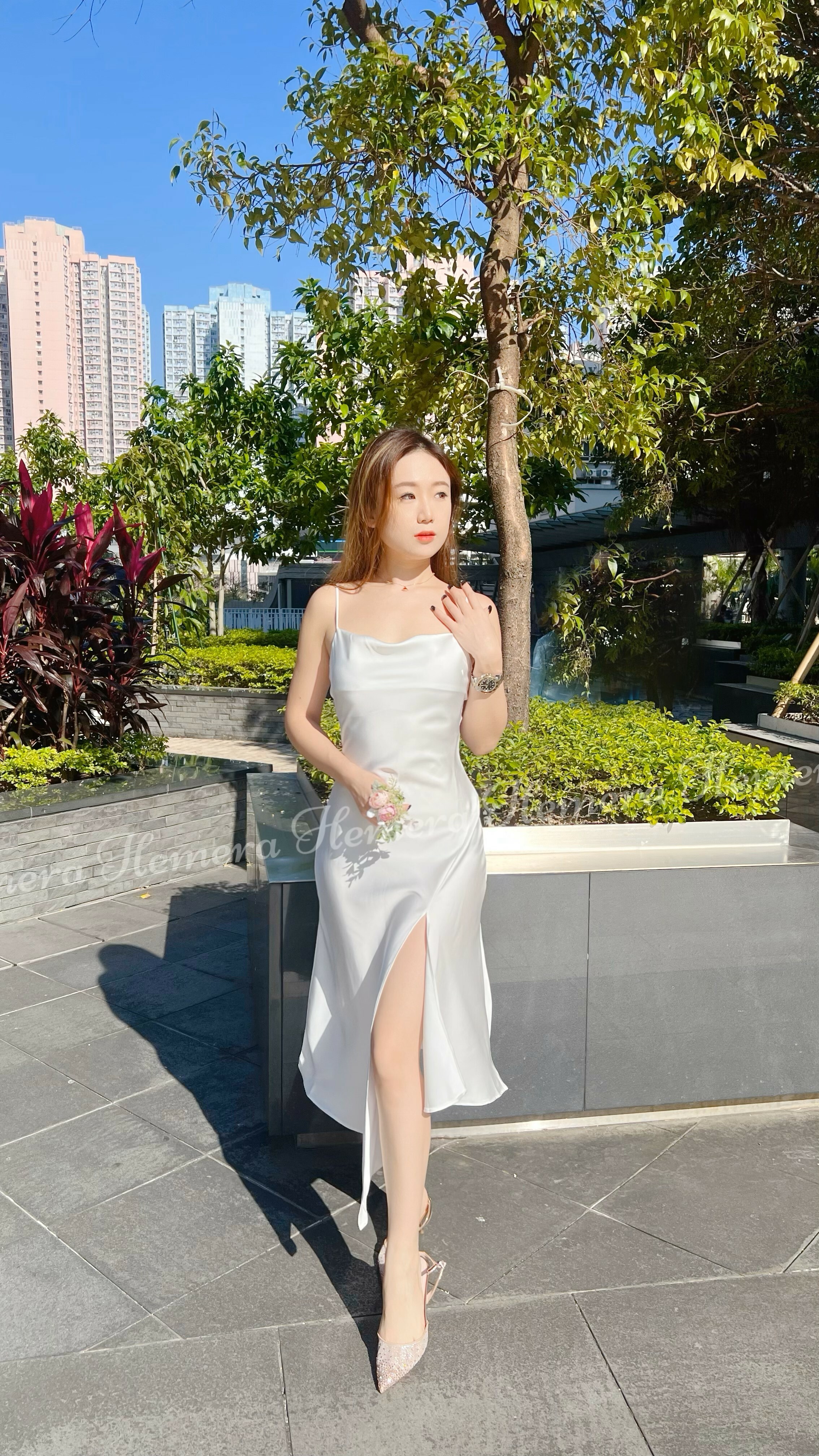 DR23W1201 法式浪漫不規則前開叉絲質連身裙