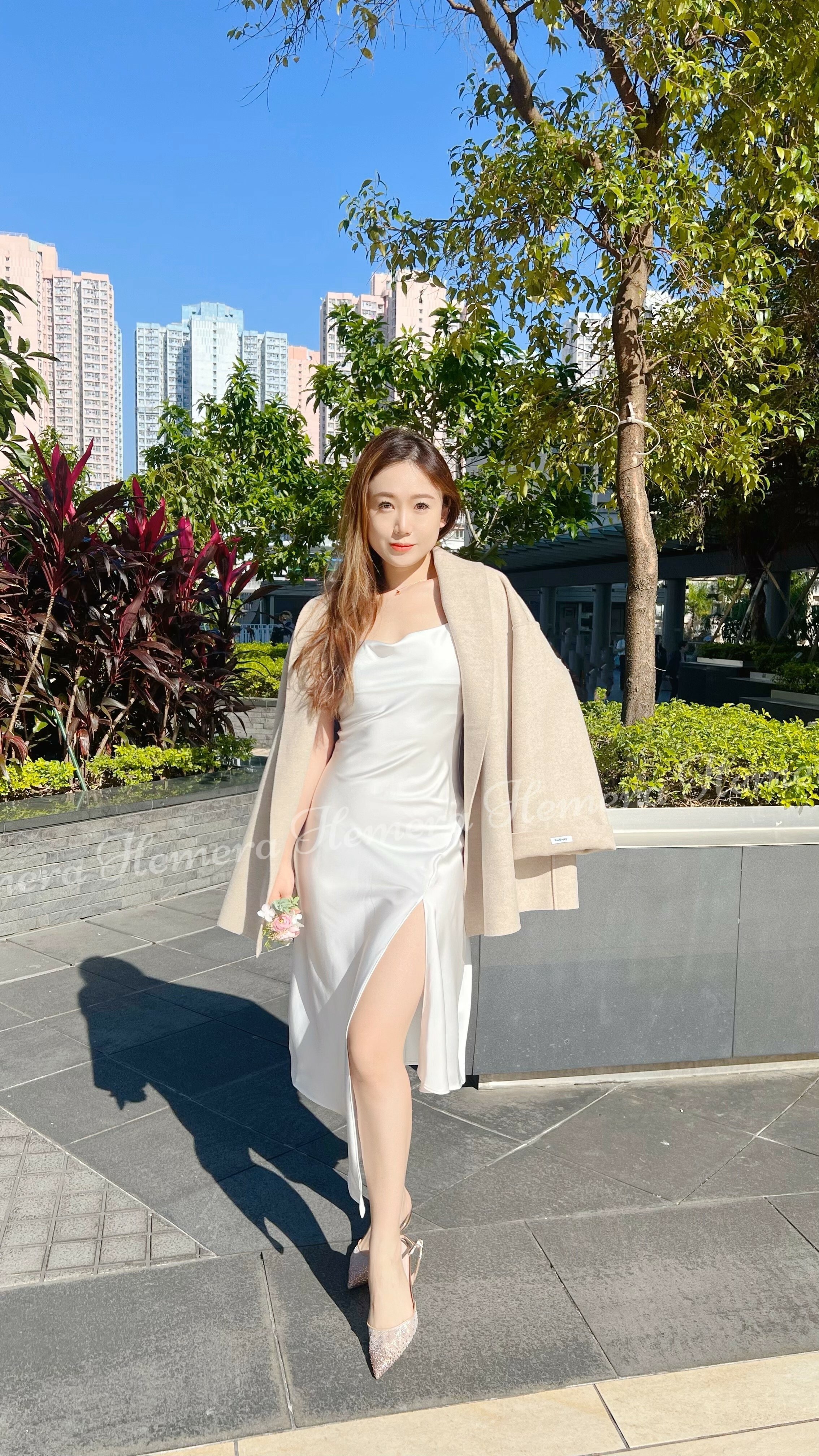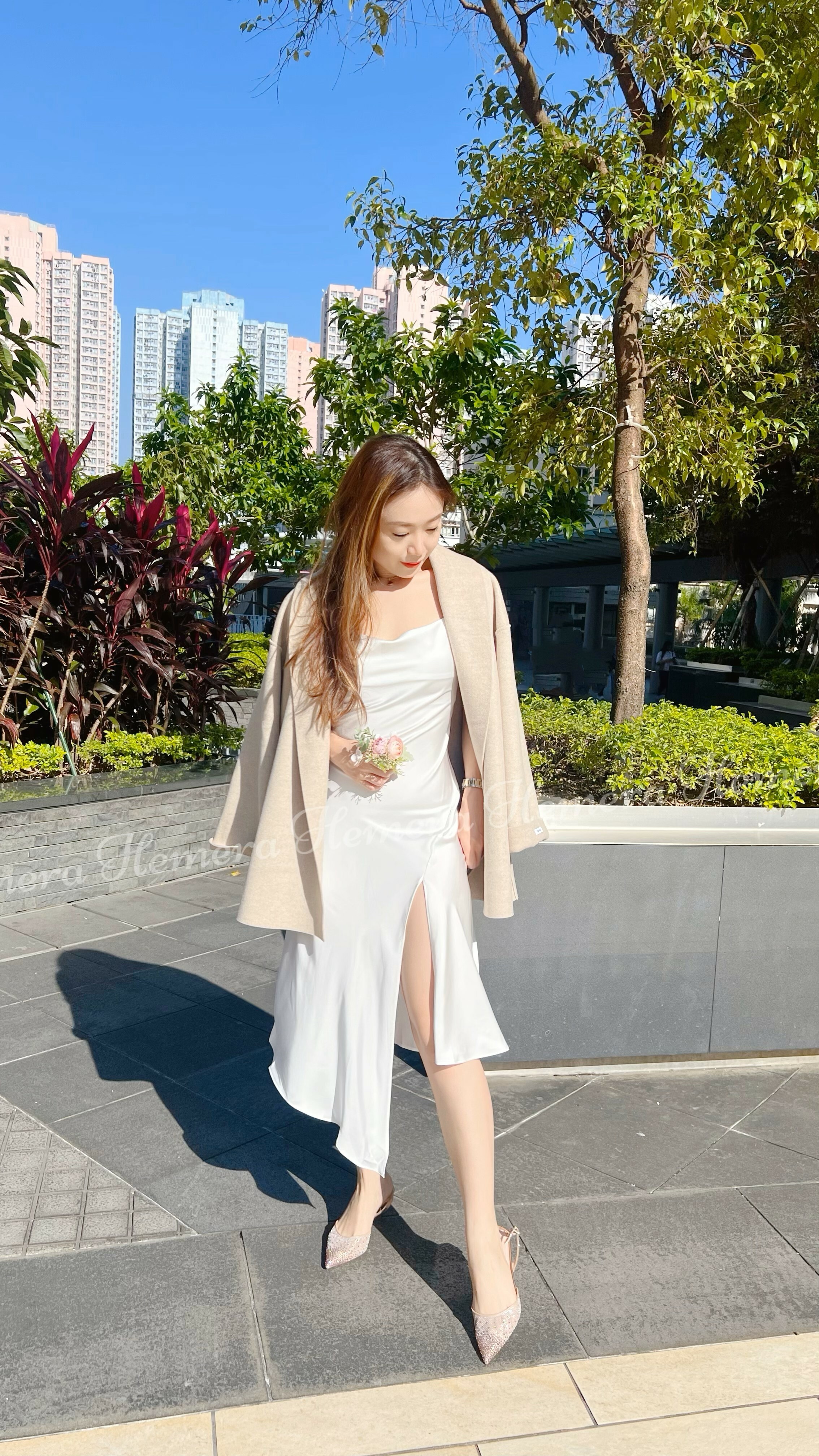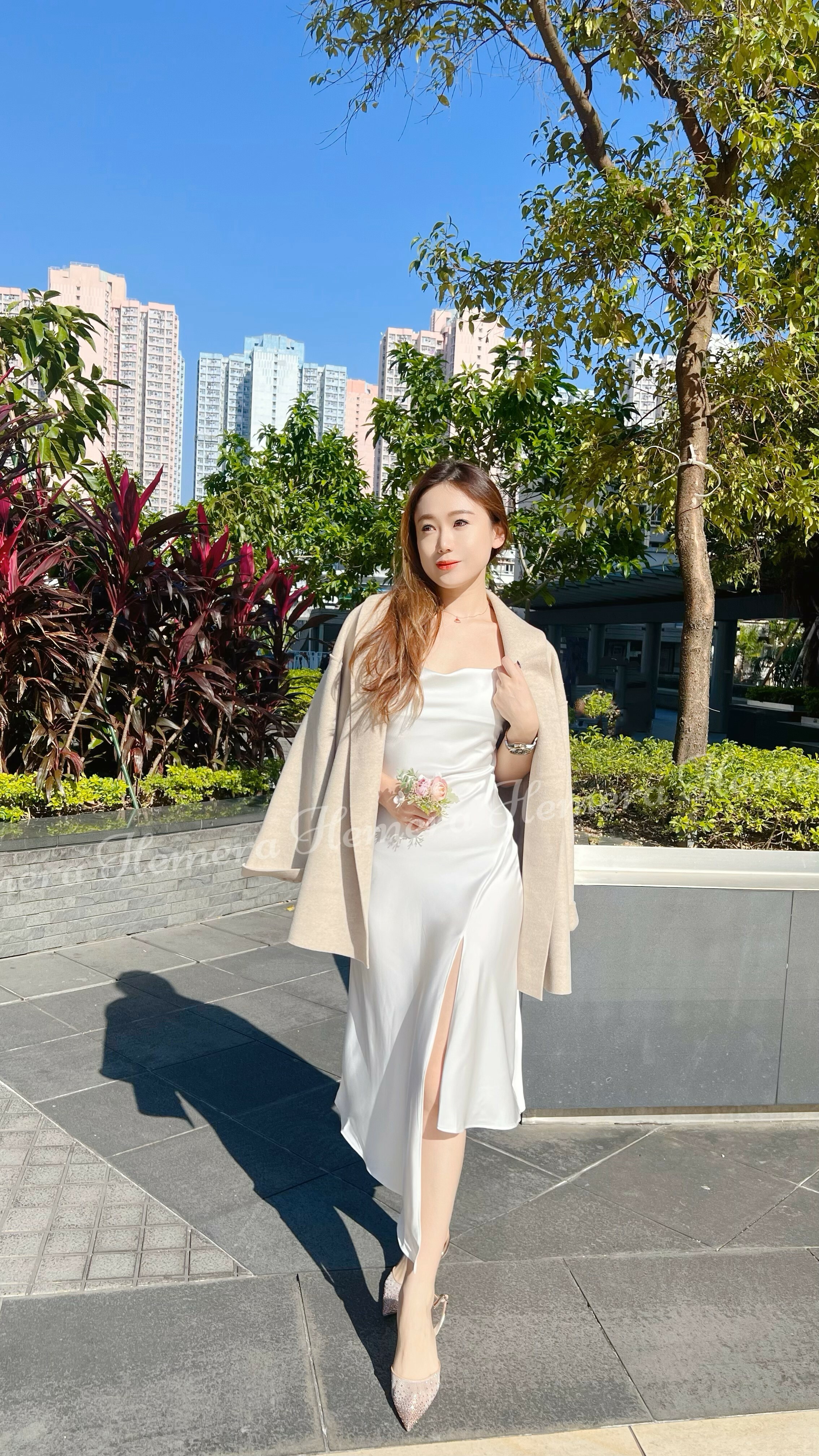DR23W1201 法式浪漫不規則前開叉絲質連身裙