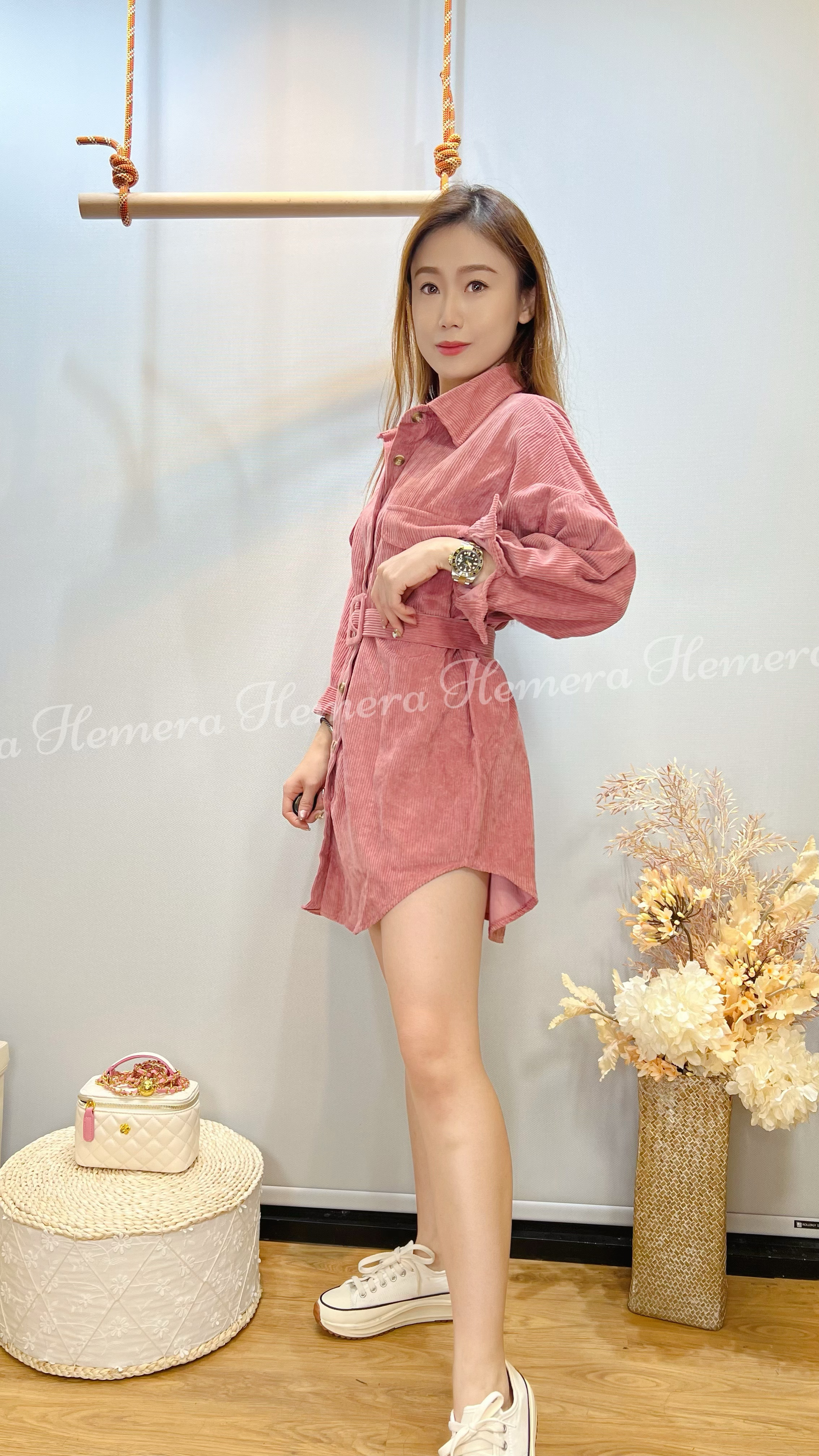 消失的下身粒芯絨連身裙