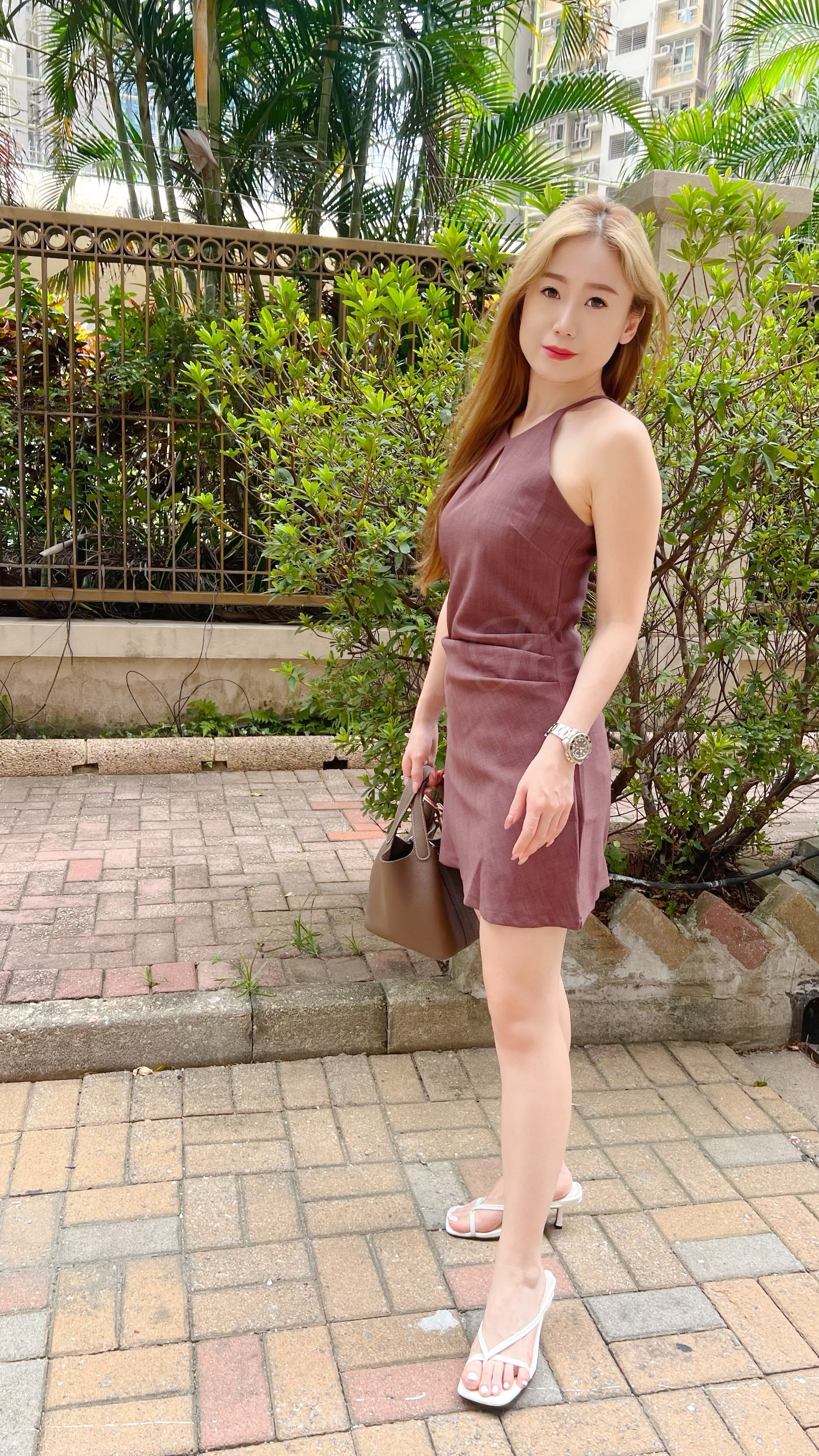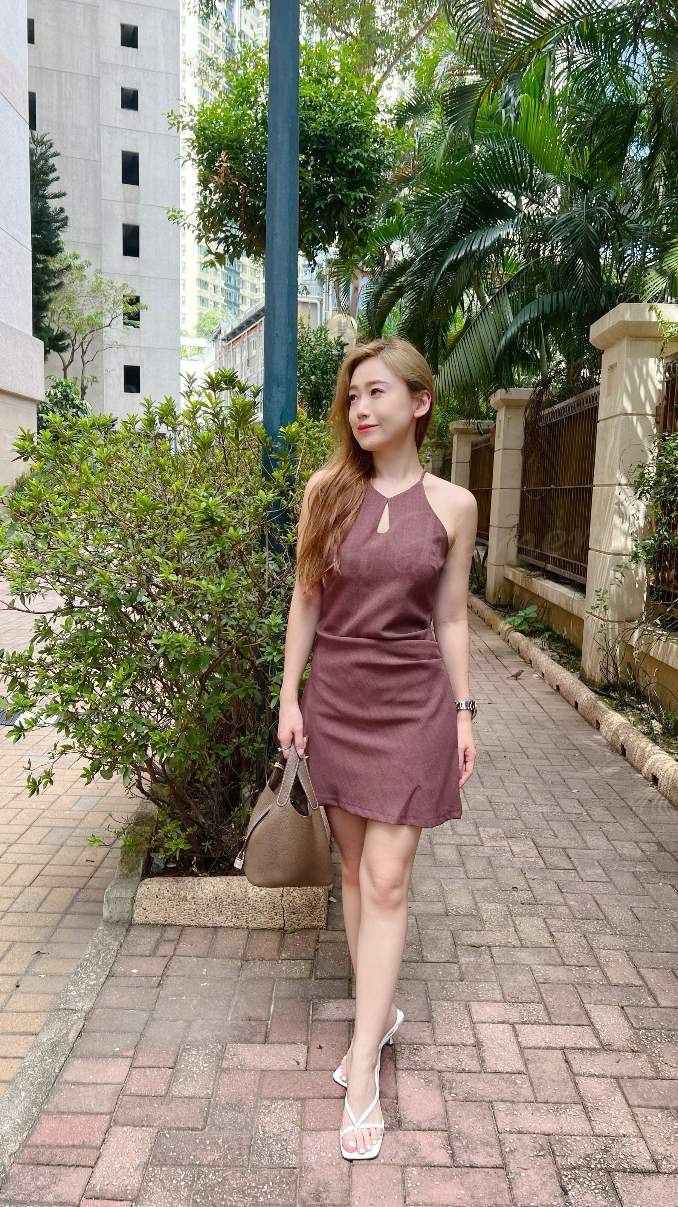 初秋棉麻質地掛頸連身裙