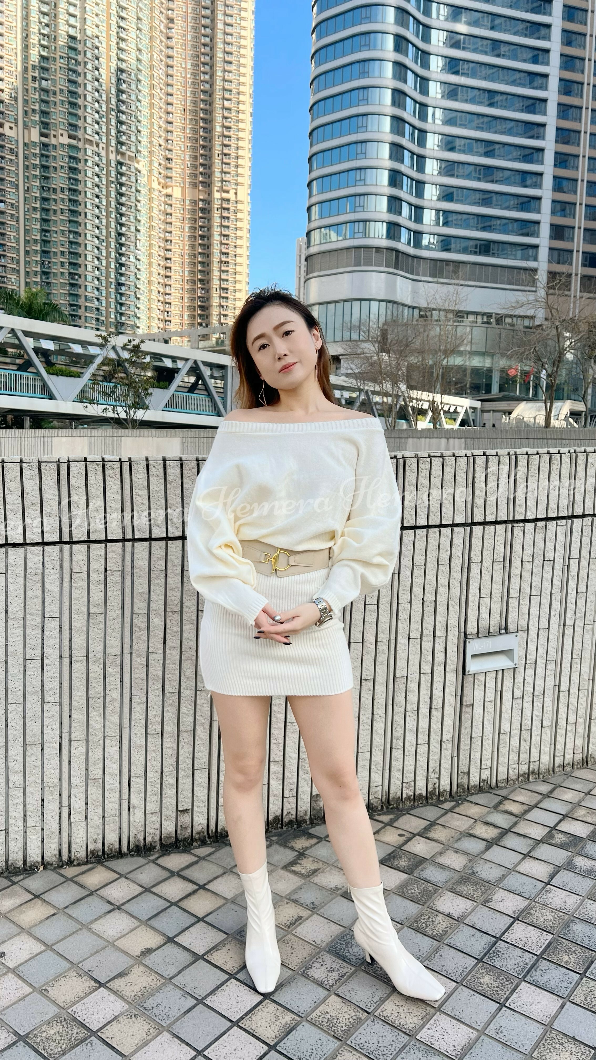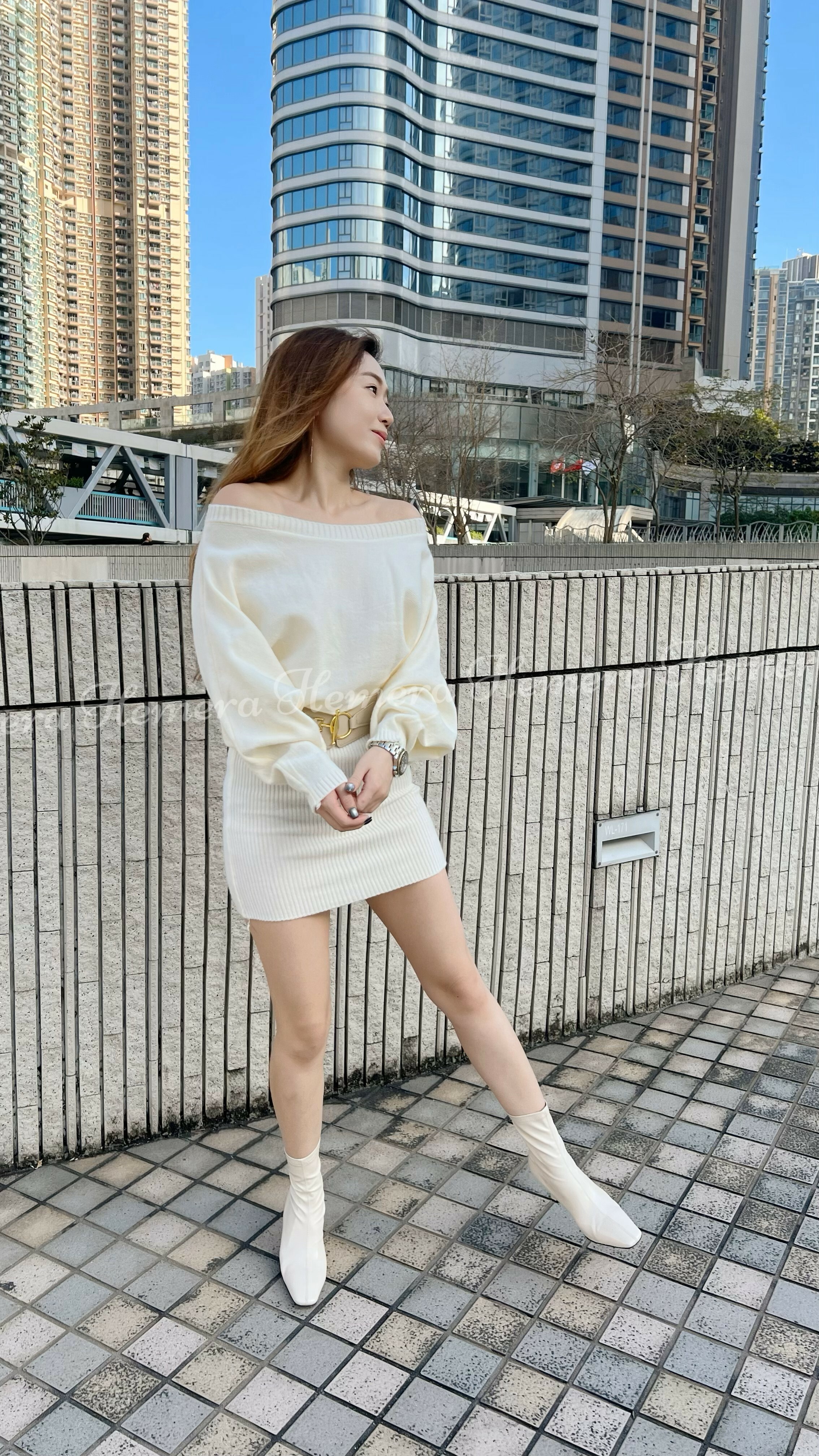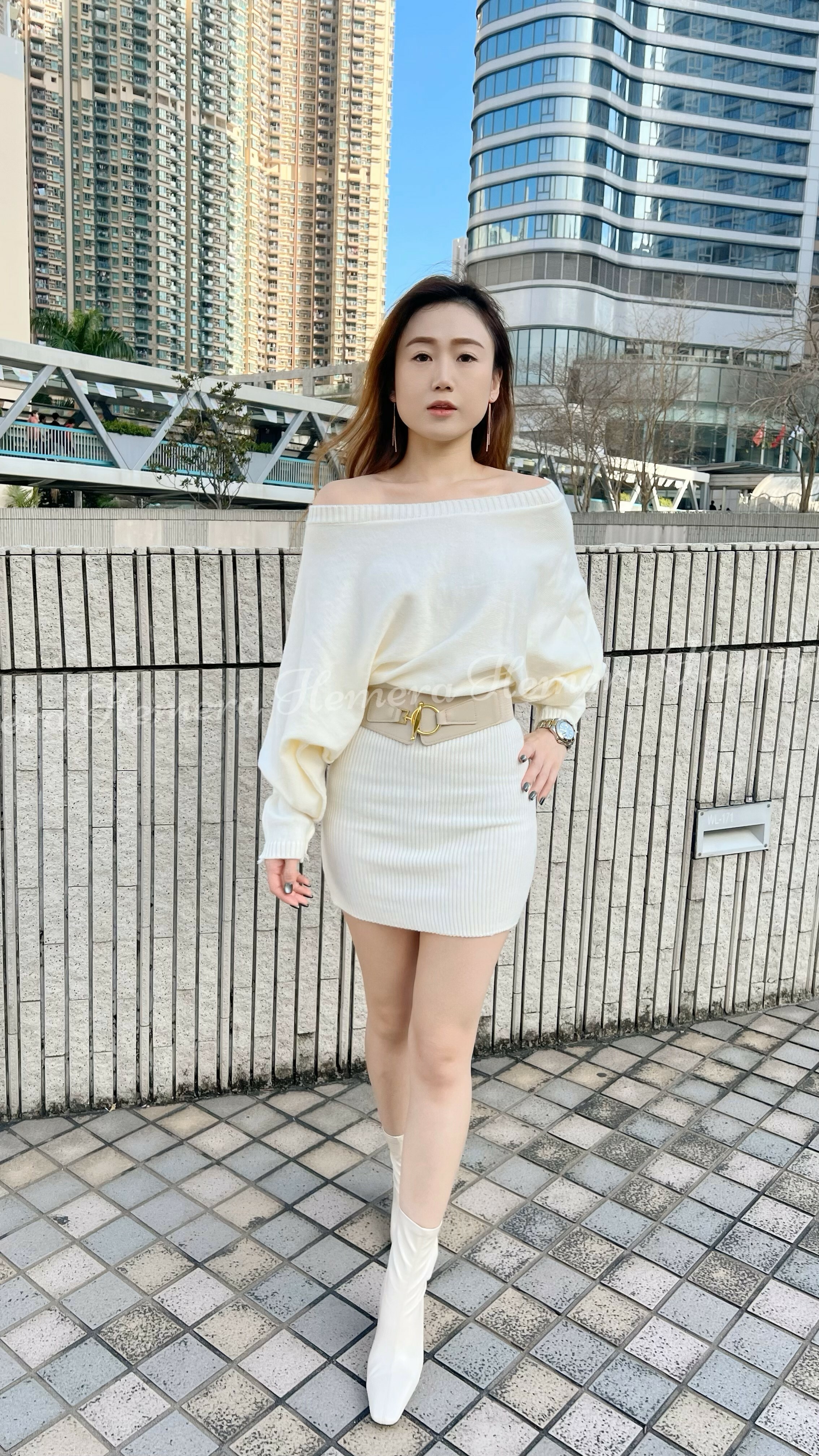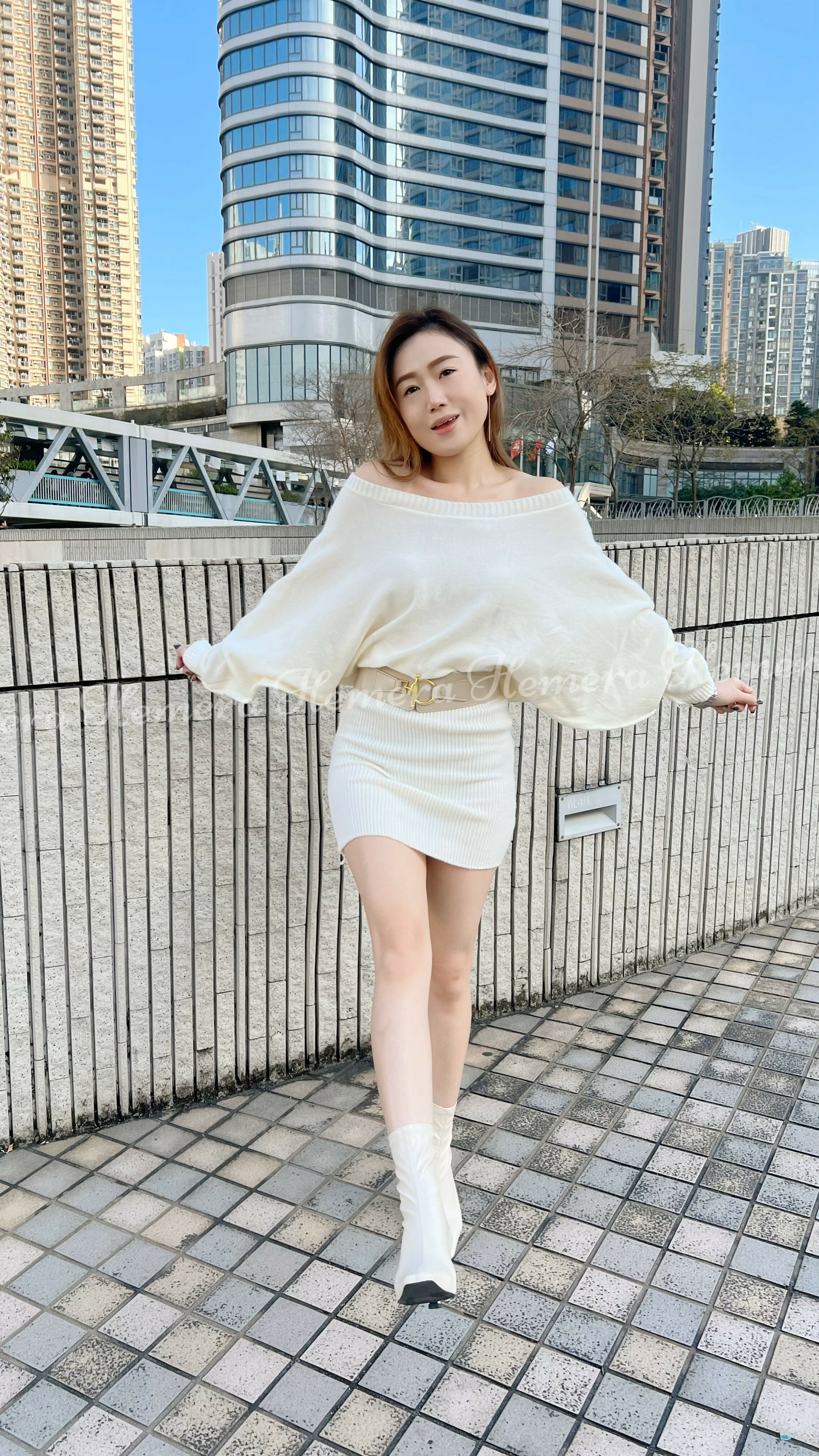 冷衫料蝙蝠手袖性感包臀連身裙連BELT