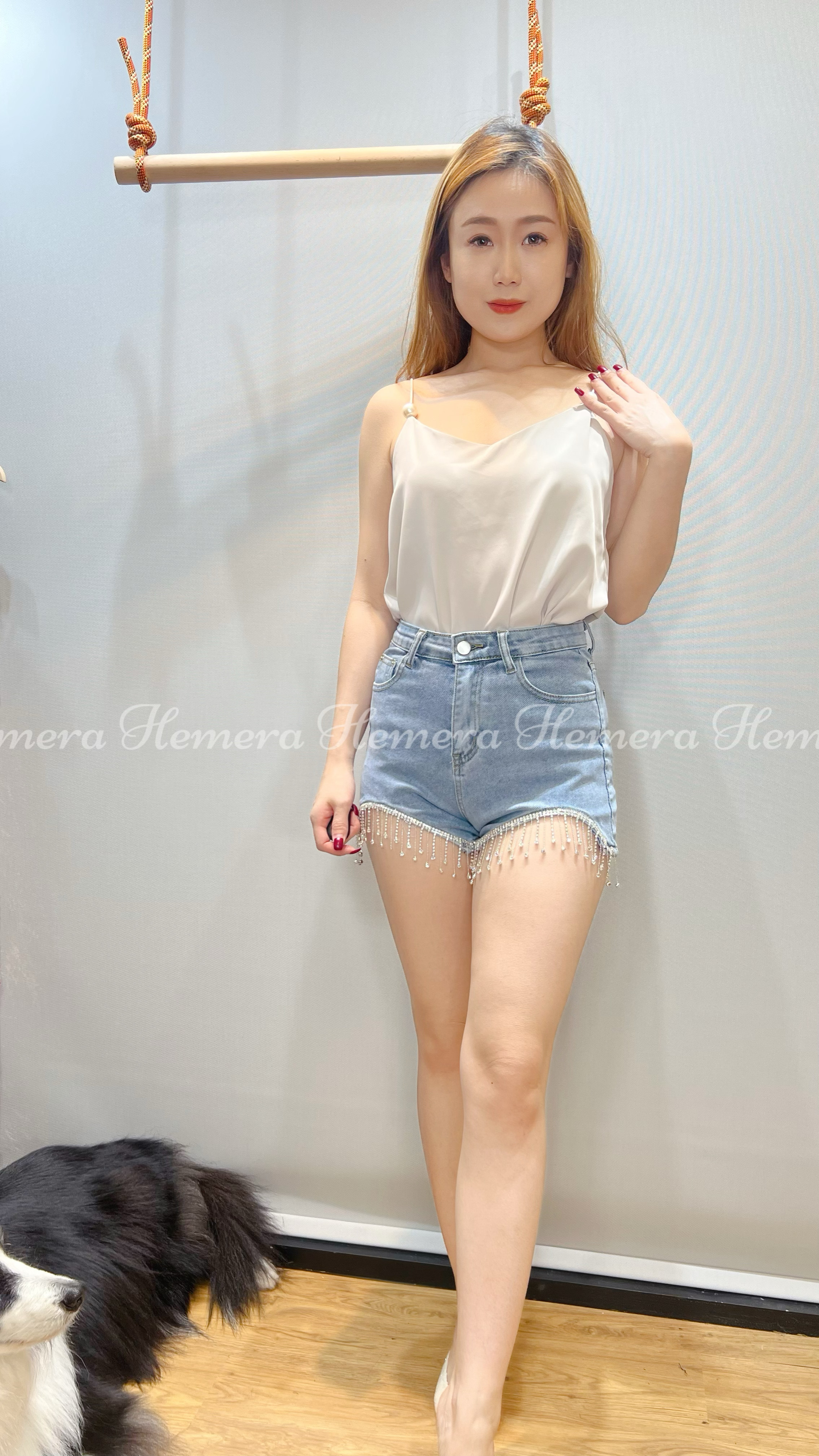 IN STOCK: 粉絲福利: TP23W0312粉絲福利款珠珠大V領吊帶