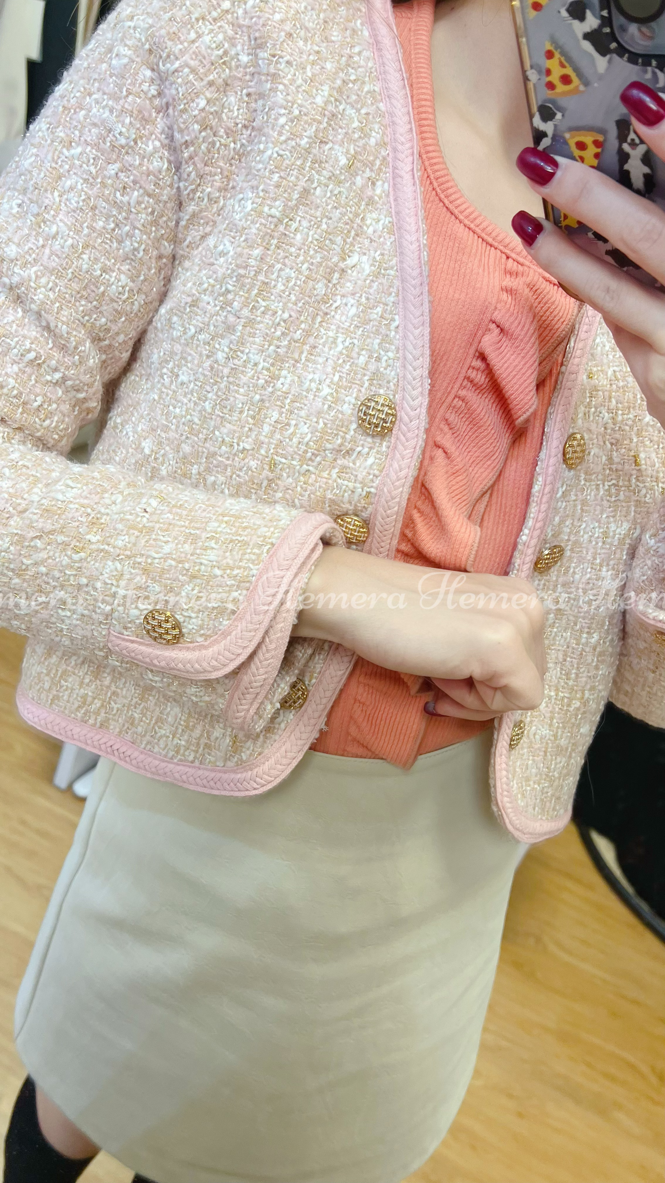 MH012801 PINK TWEED CROP JACKET