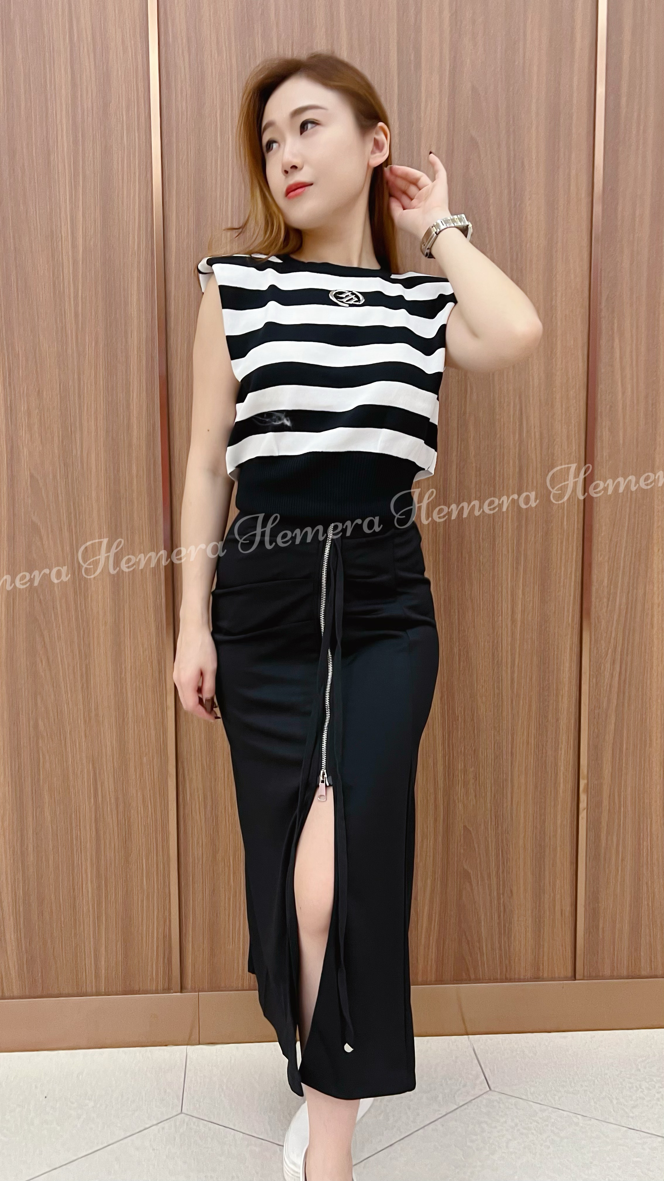 開叉摺摺中長裙