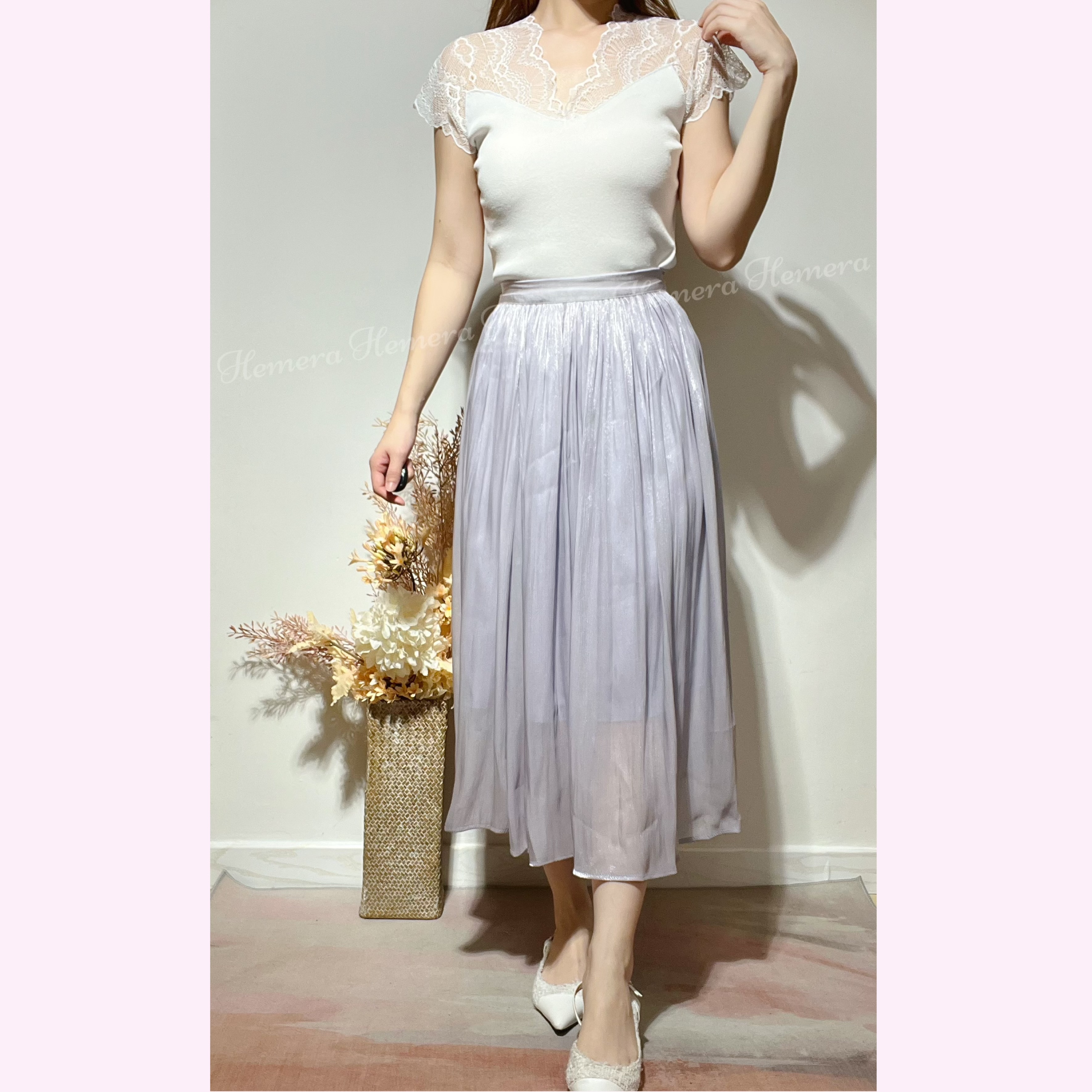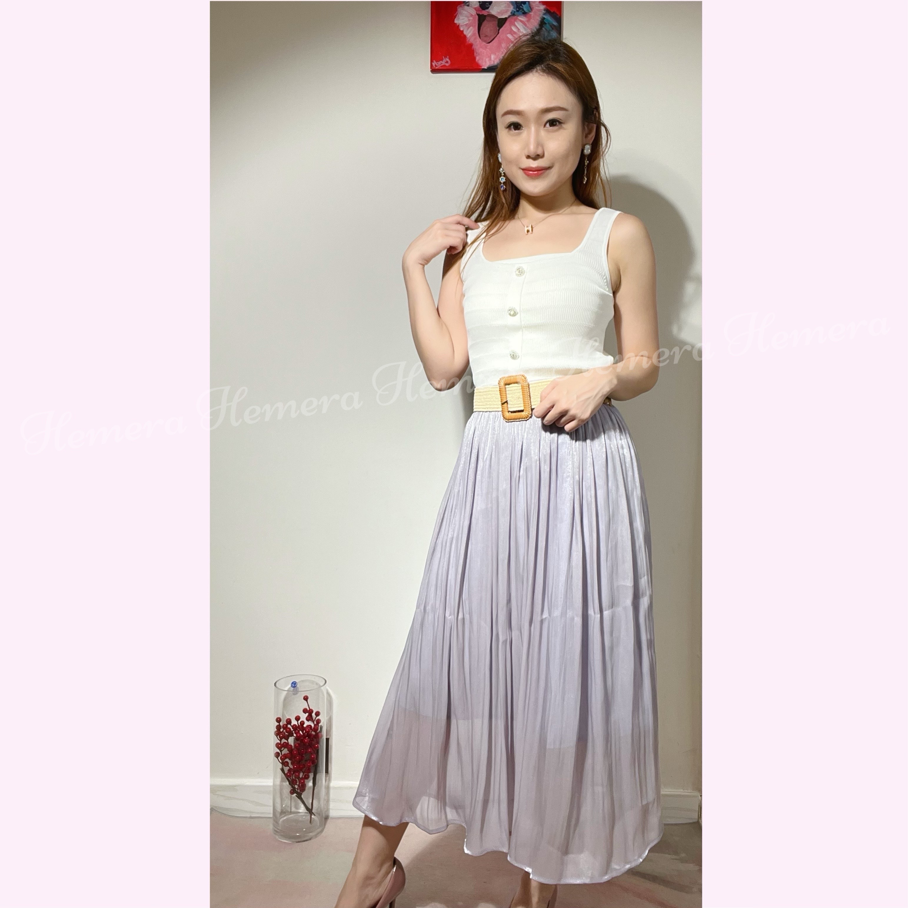 美美香芋紫皺皺中長裙