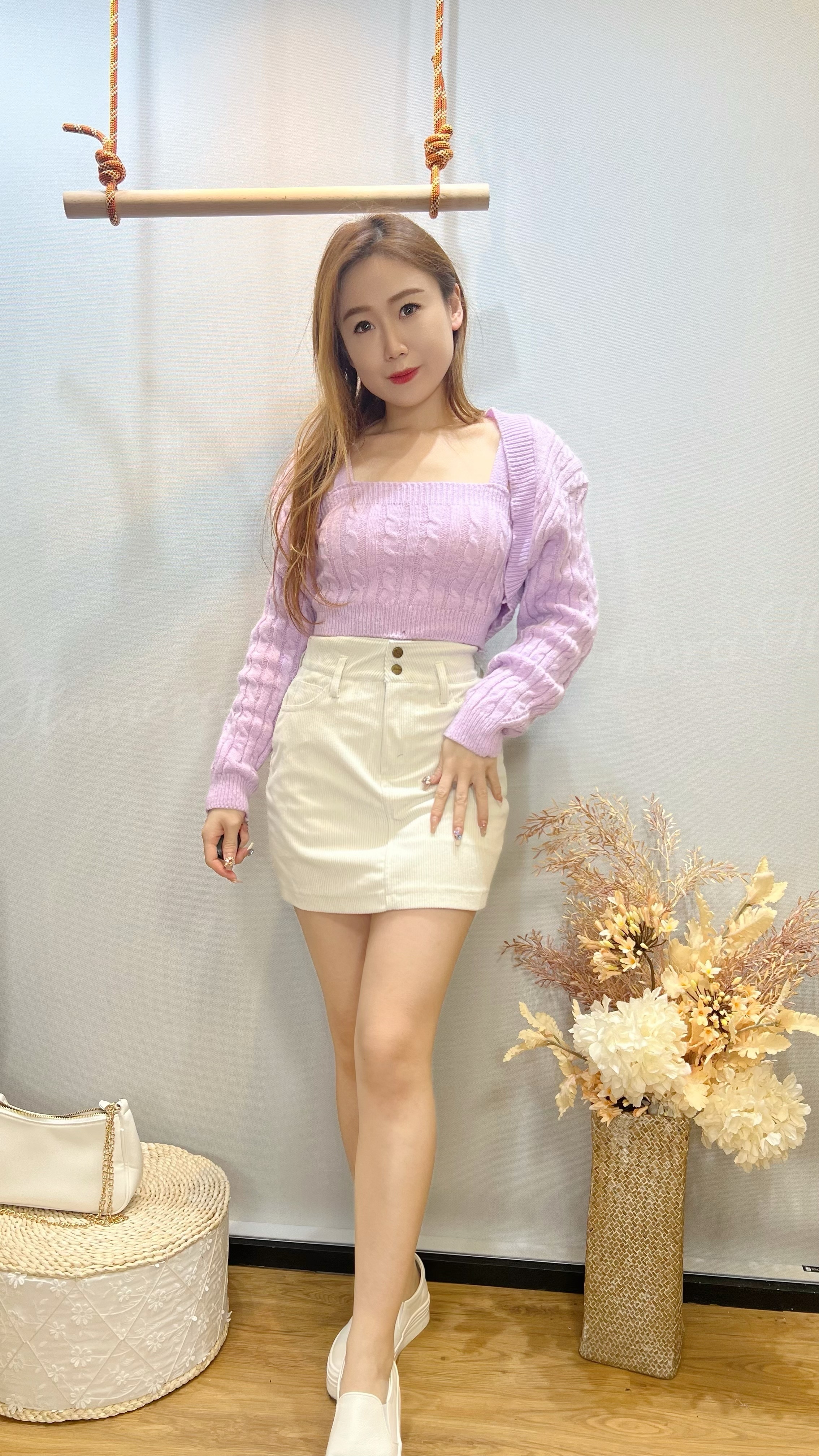 扭麻花冷衫料吊帶背心外套套裝