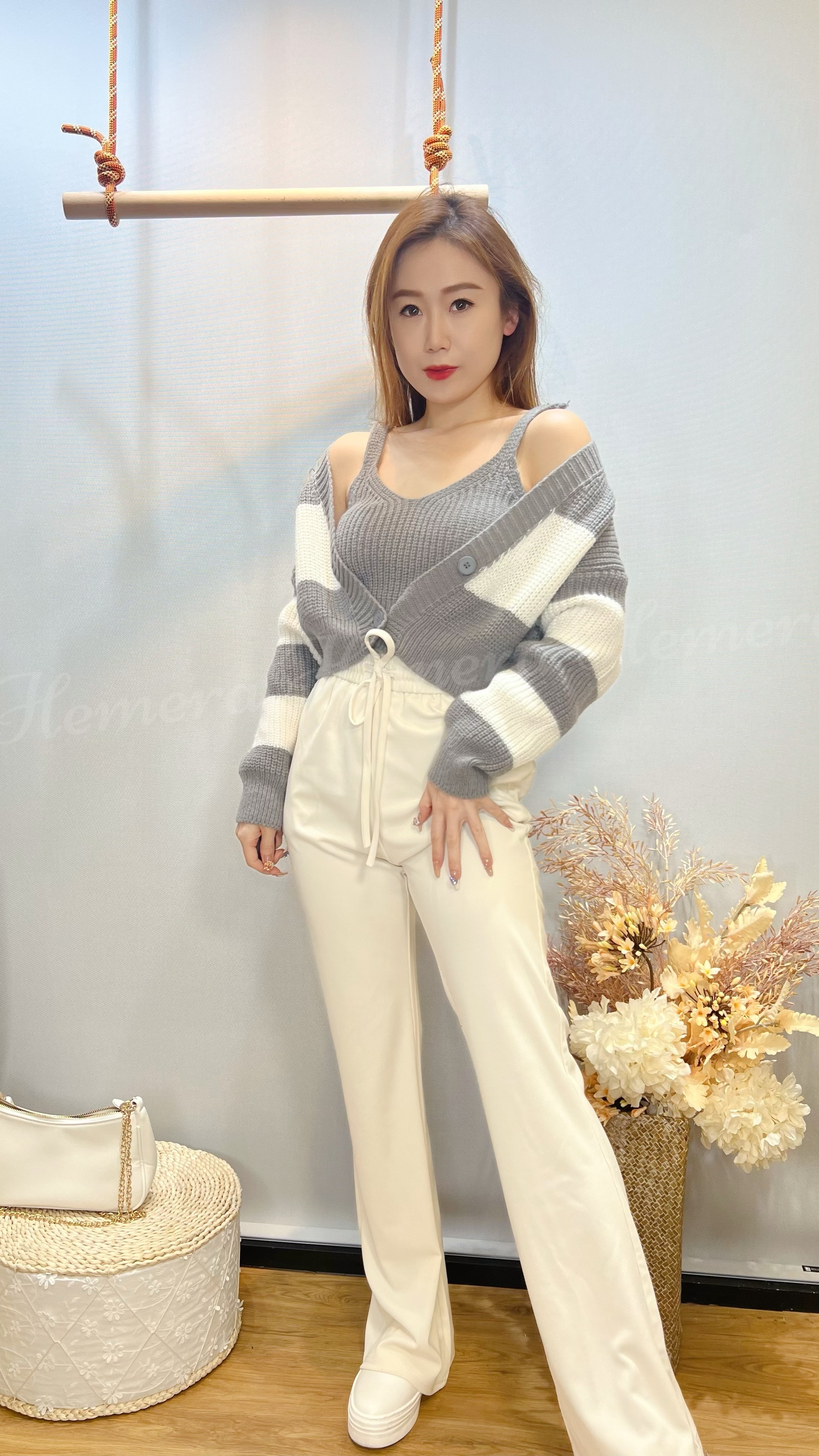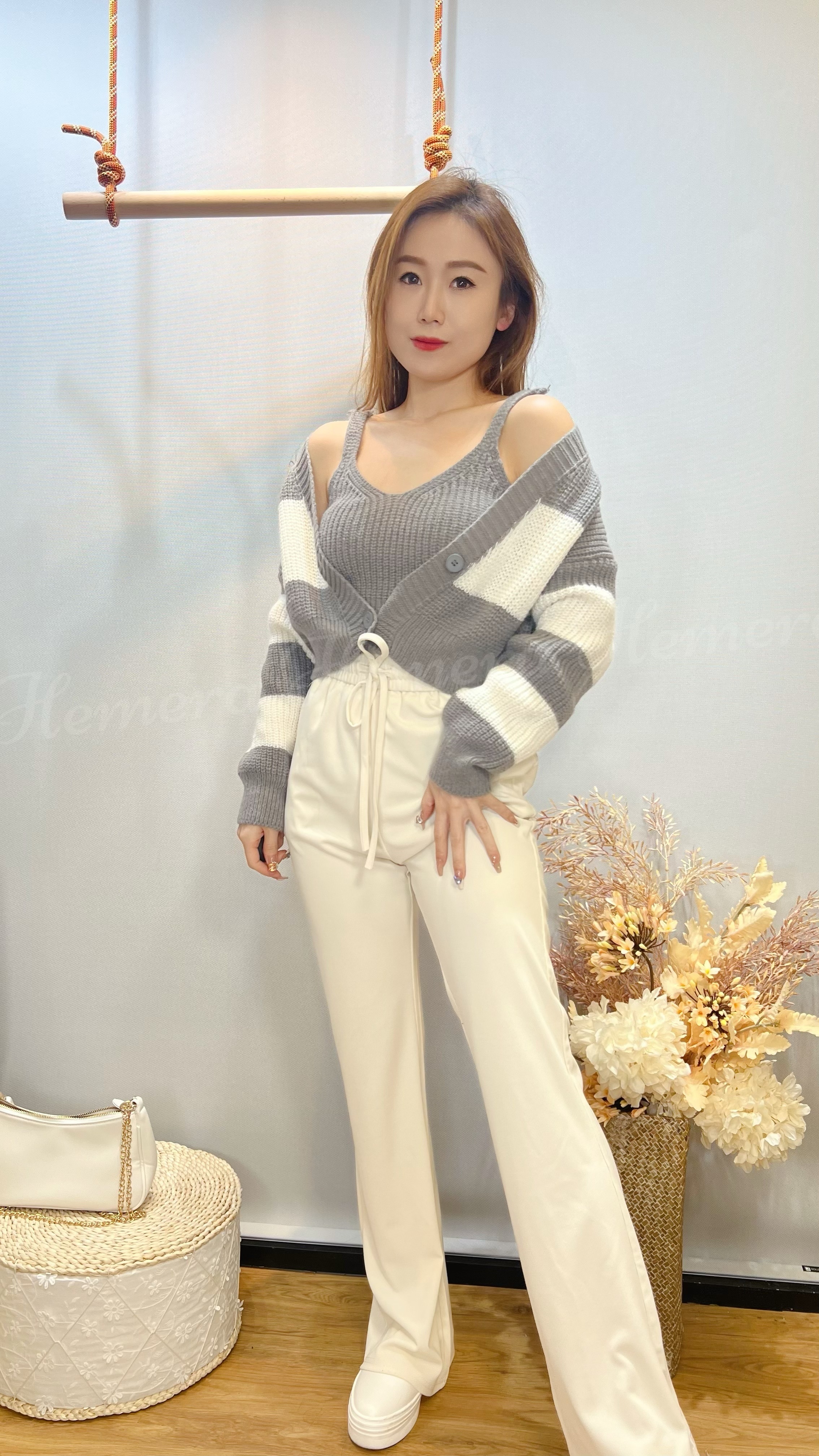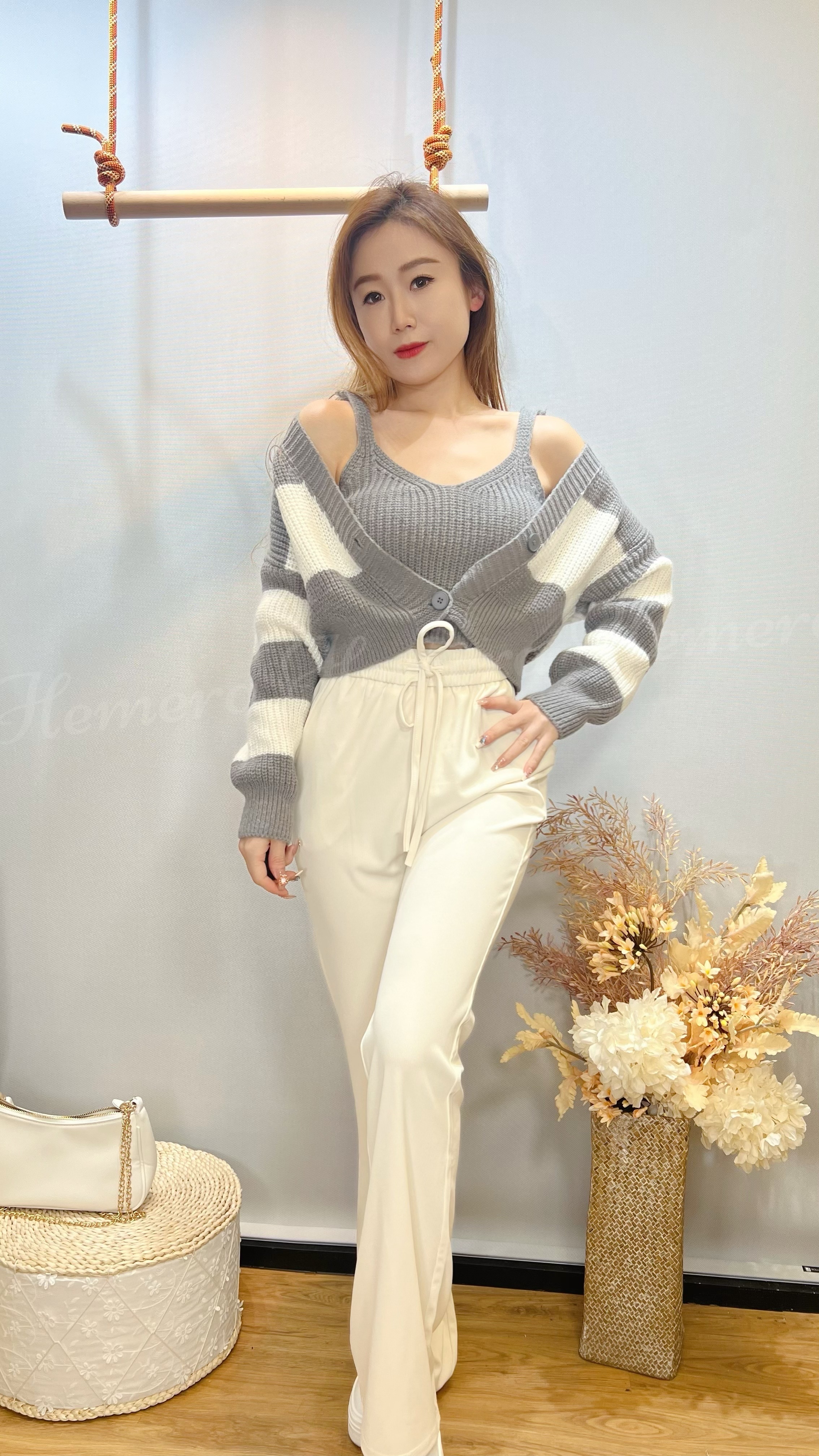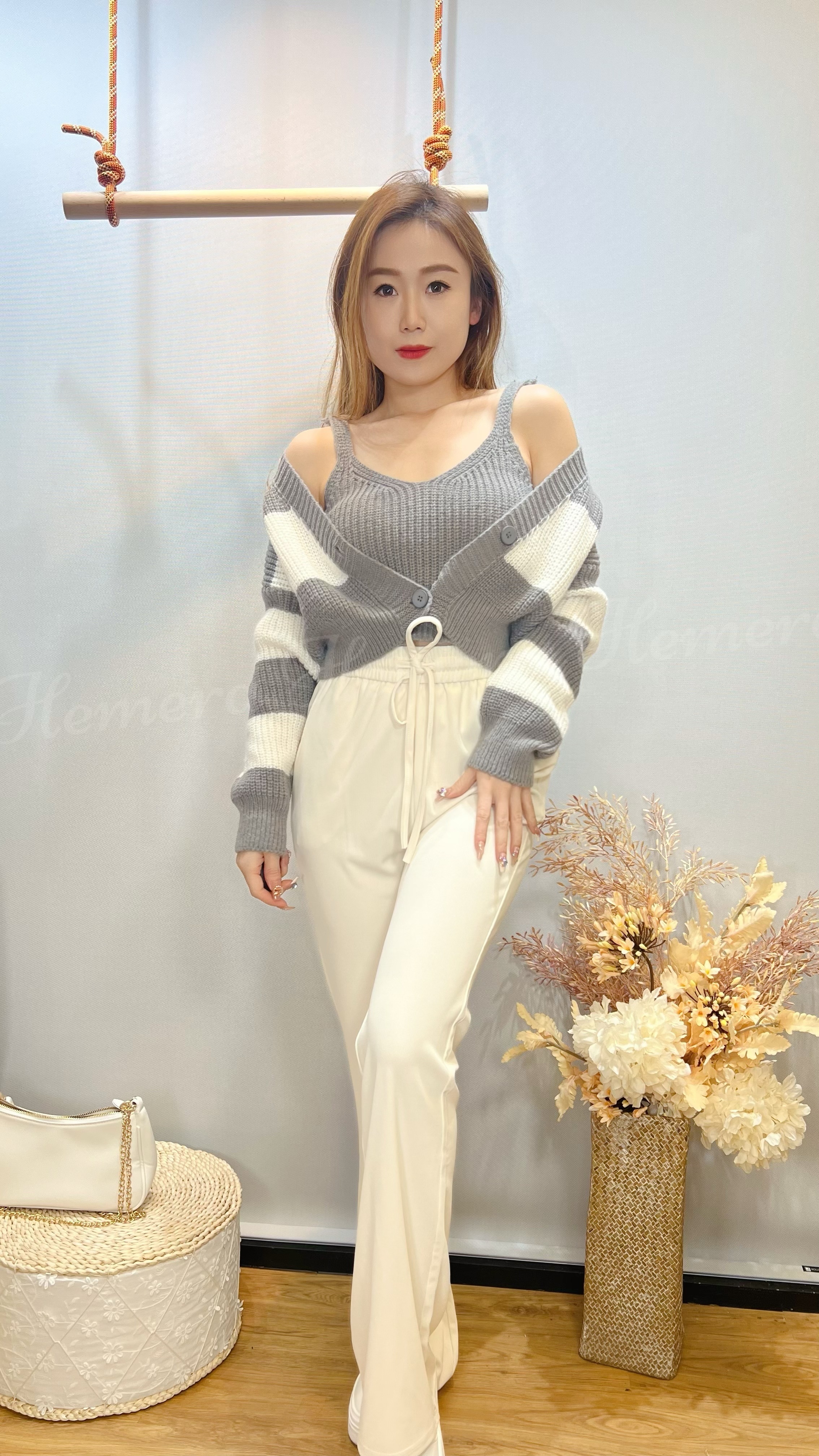 冷衫衫V領吊帶背心連鬆版外套