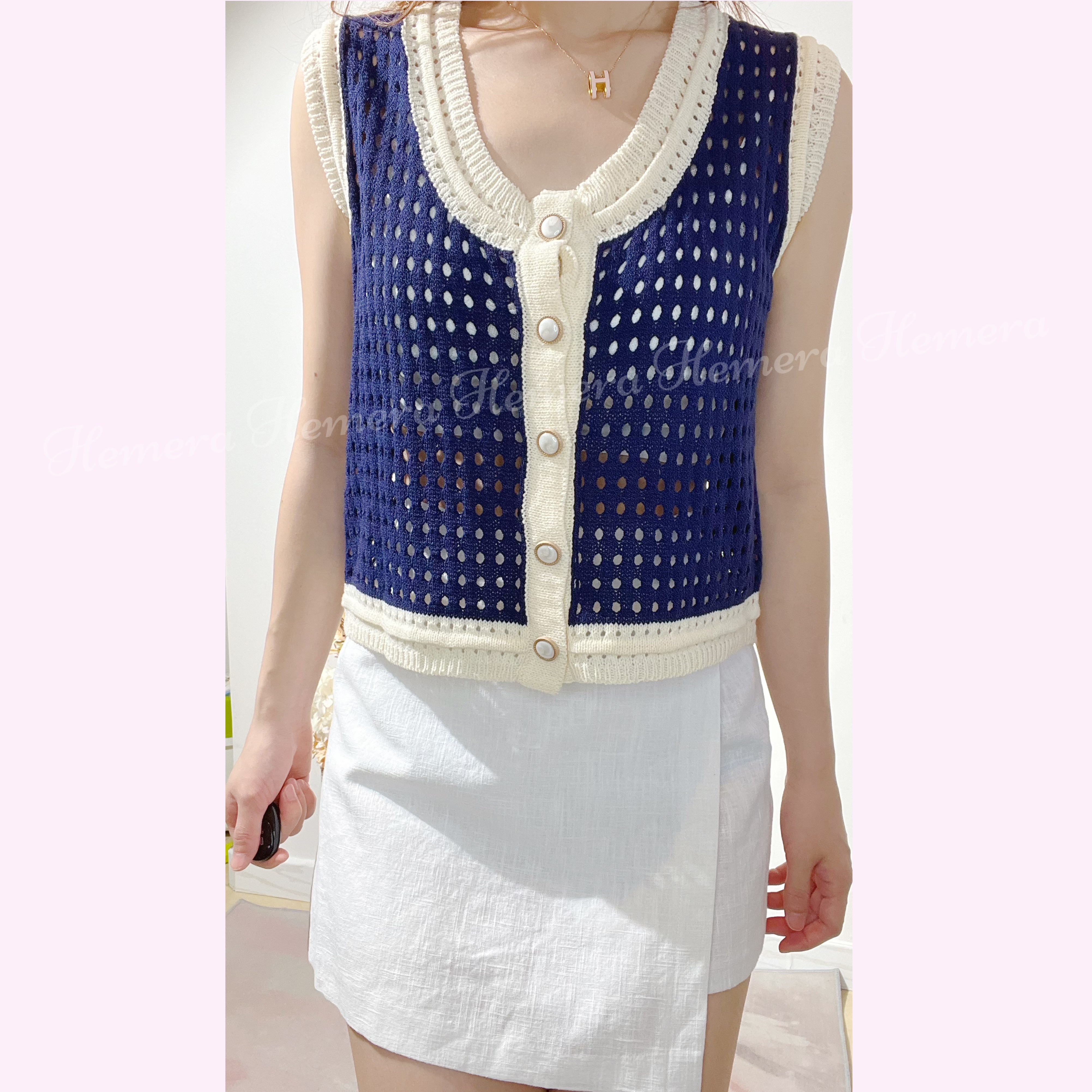 通花拼色背心