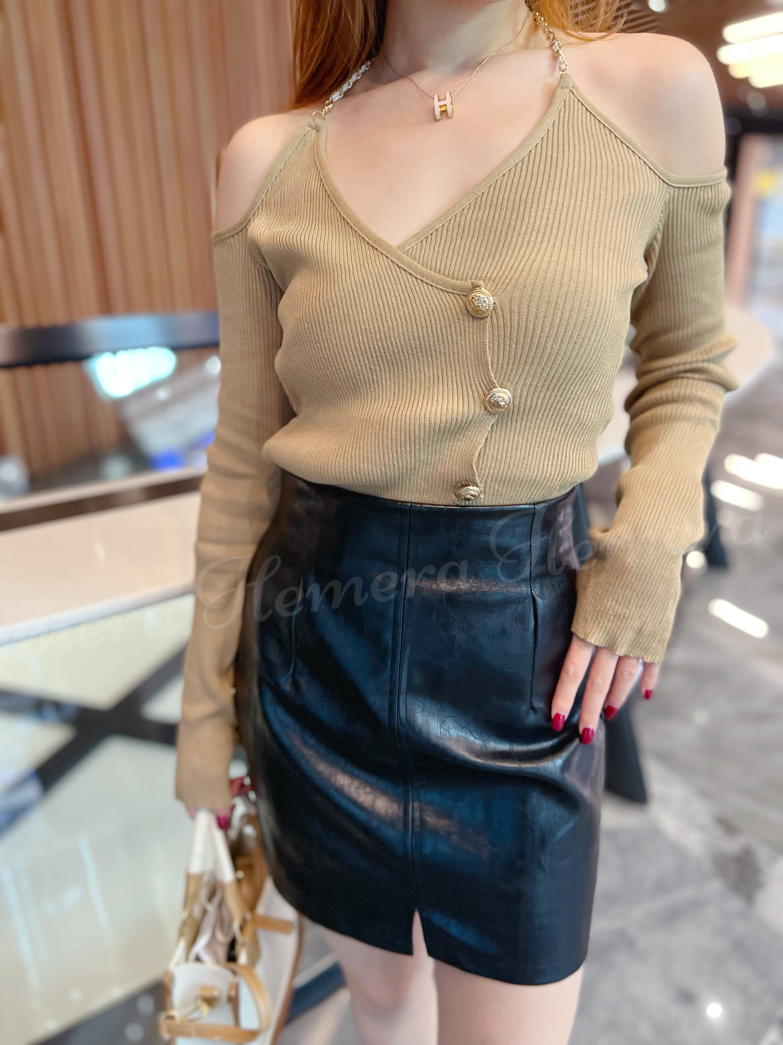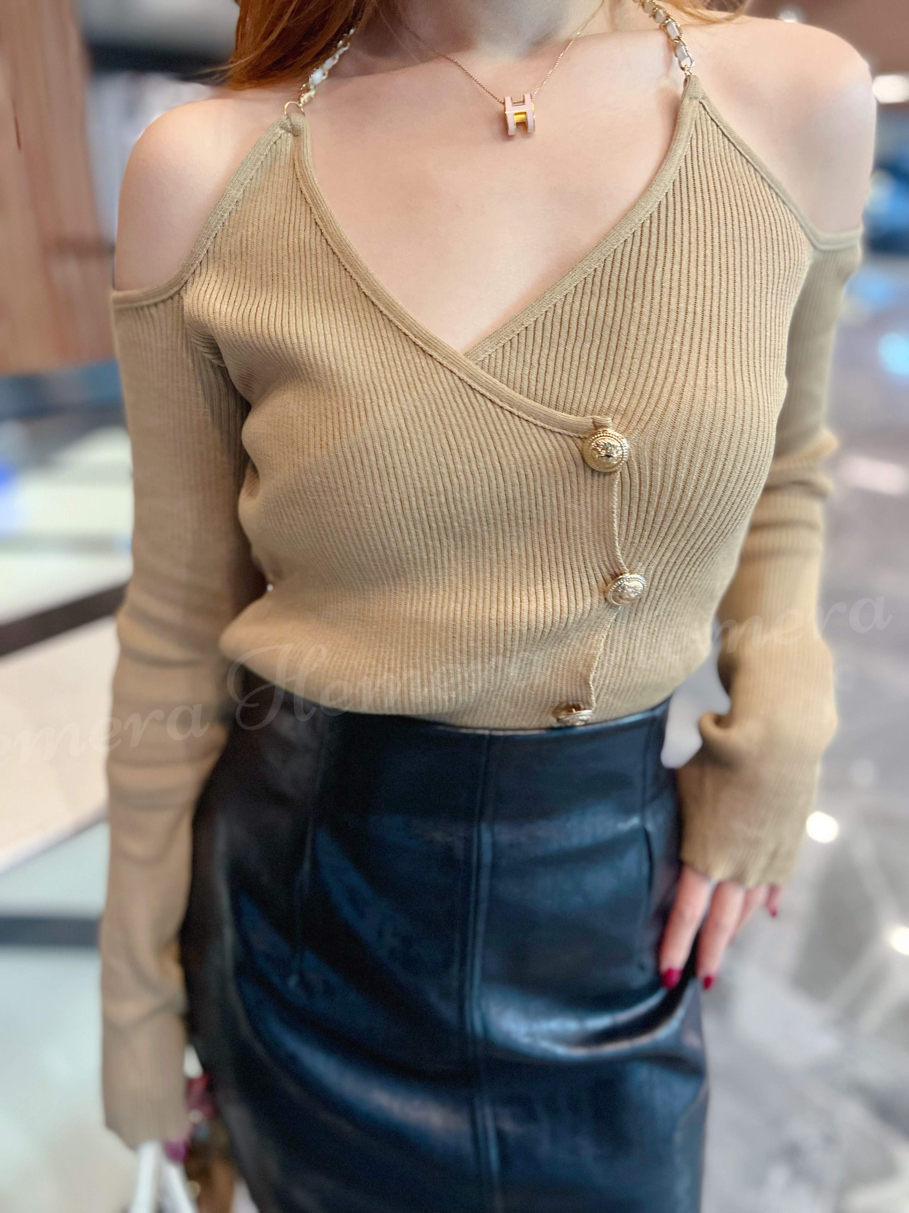IN STOCK: TP22W1252 COCO CHAIN HANGNECK CROSS OFF SHOULDER COTTON TOP