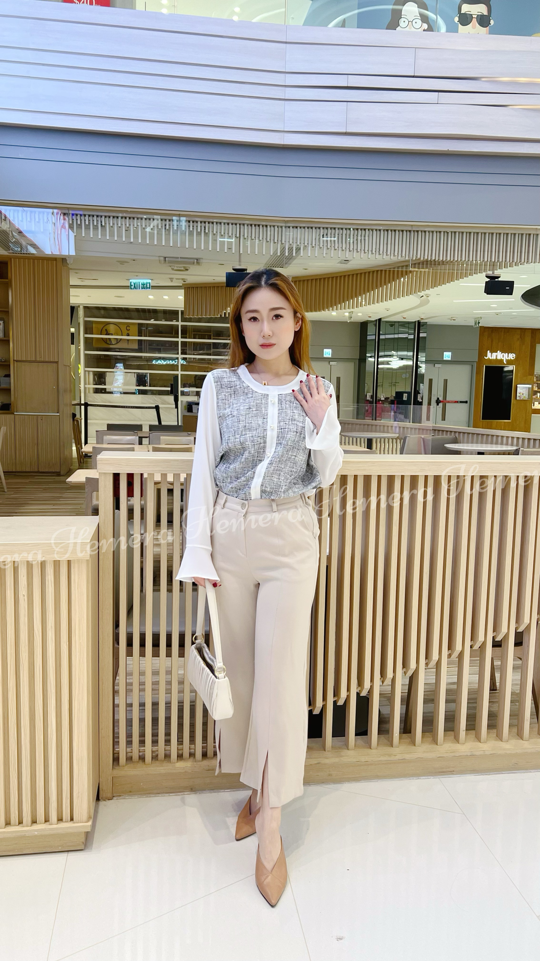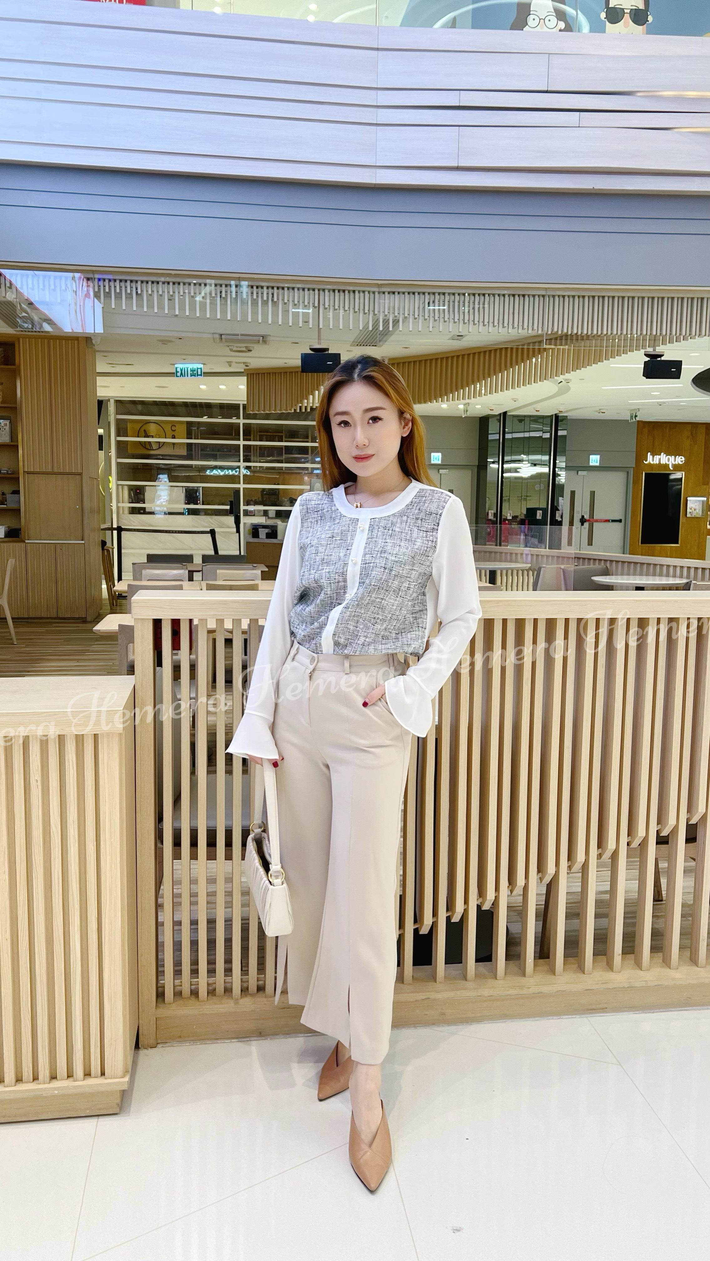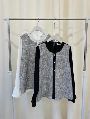 薄身雪紡拼藝TWEED料上身