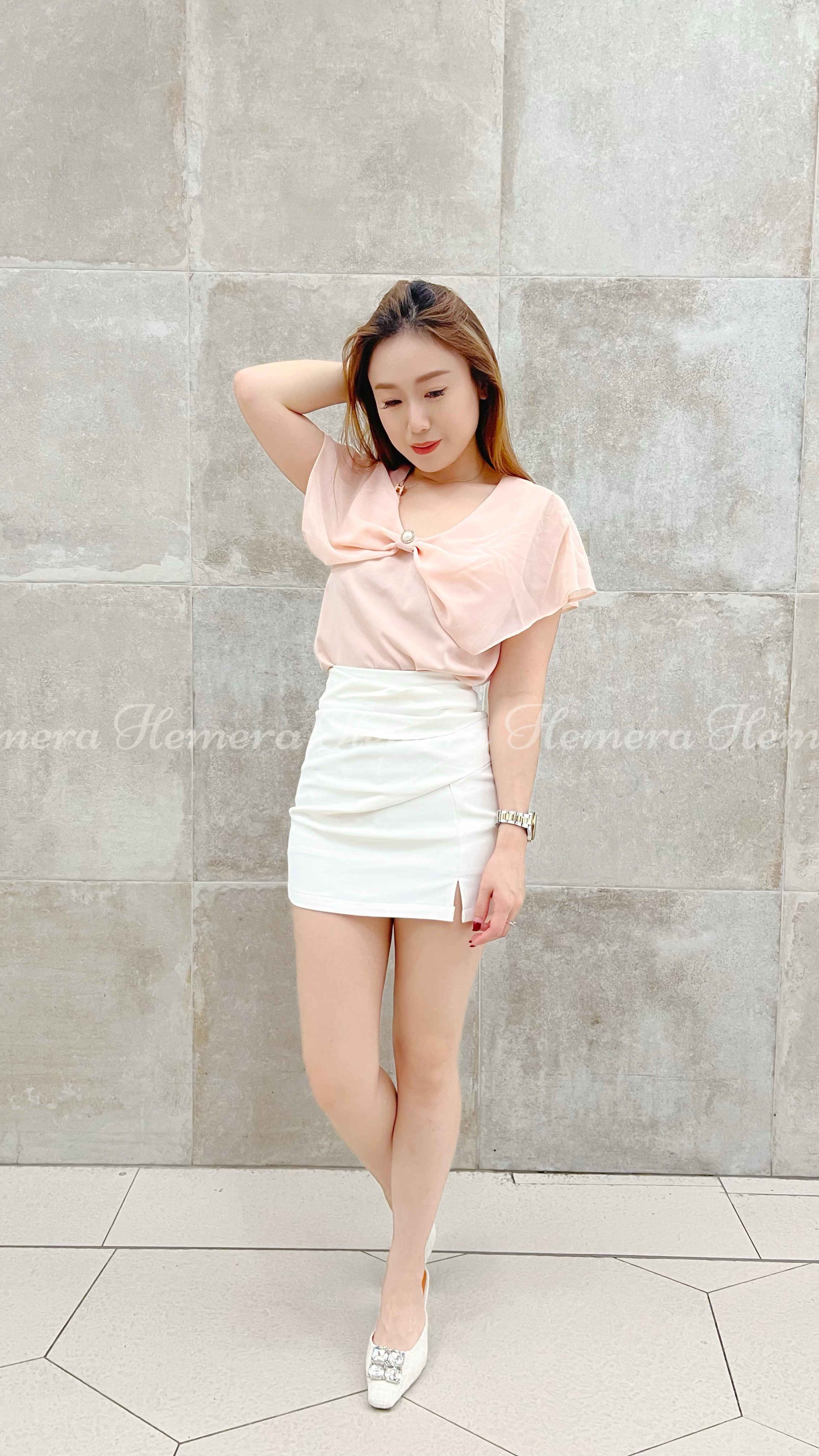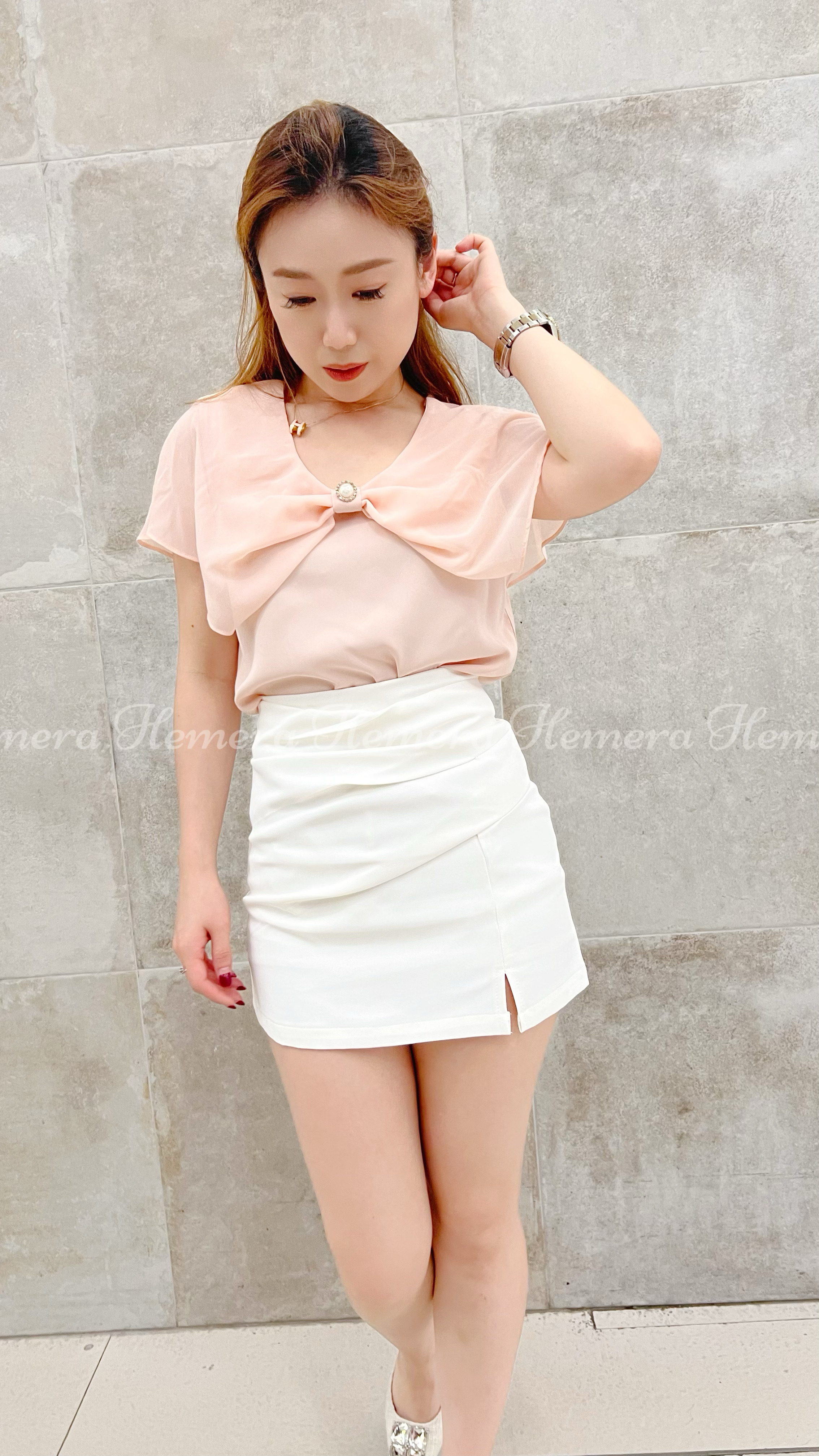 IN STOCK: TP23W0432 肉肉手臂恩物:大蝴蝶結雪紡上身