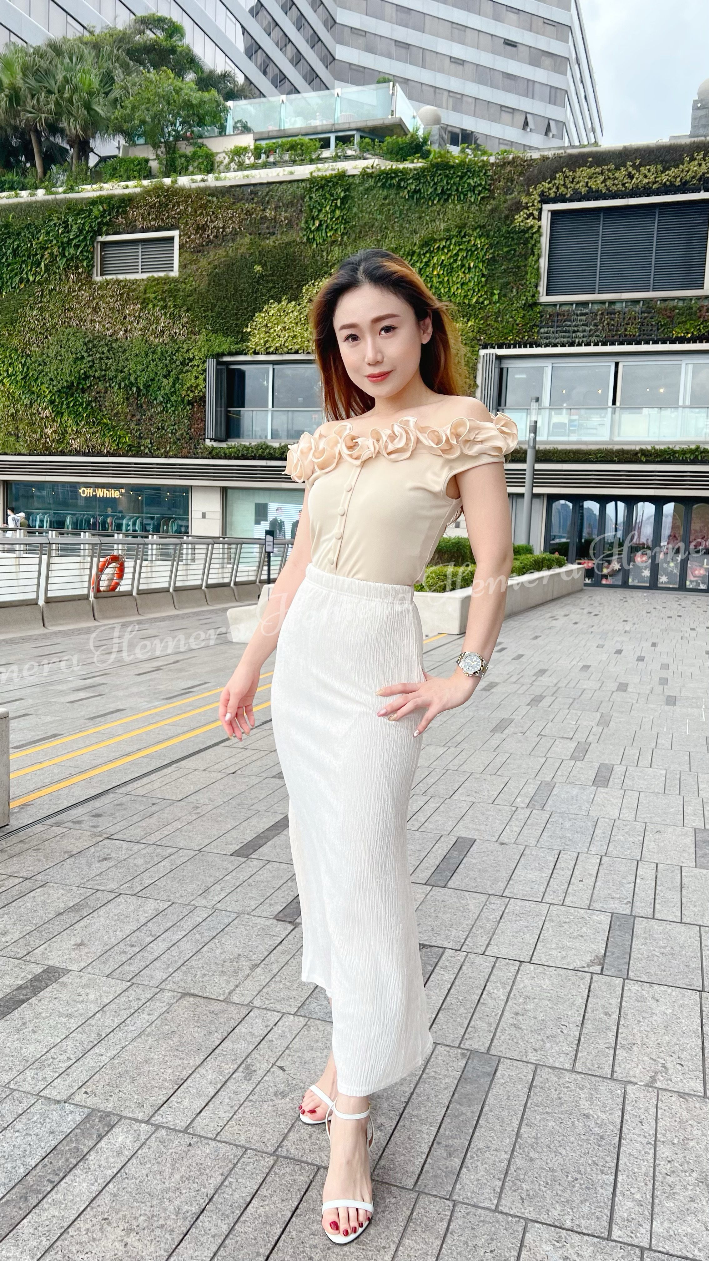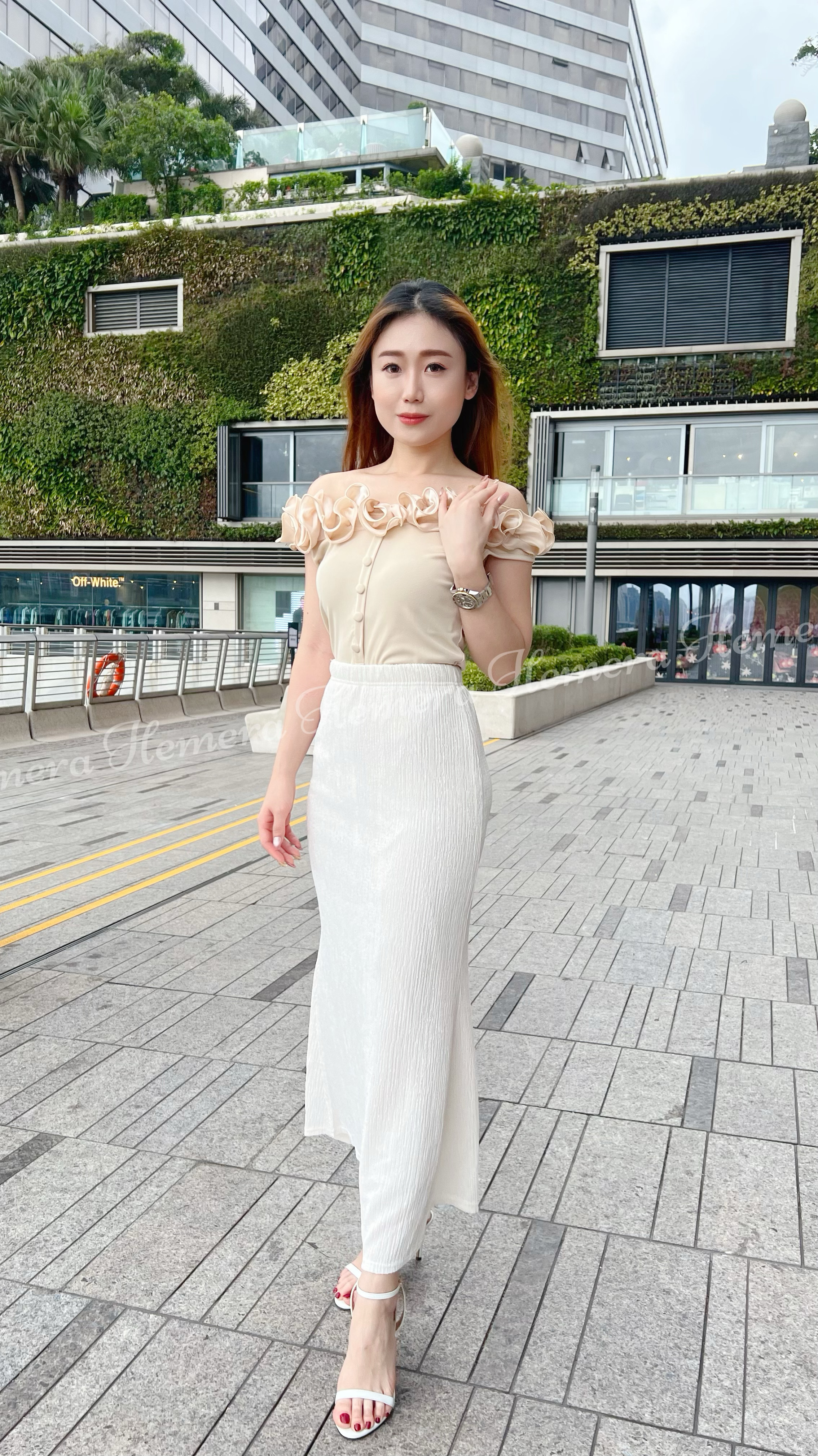 成個領口都做左絲質RUFFLES邊位