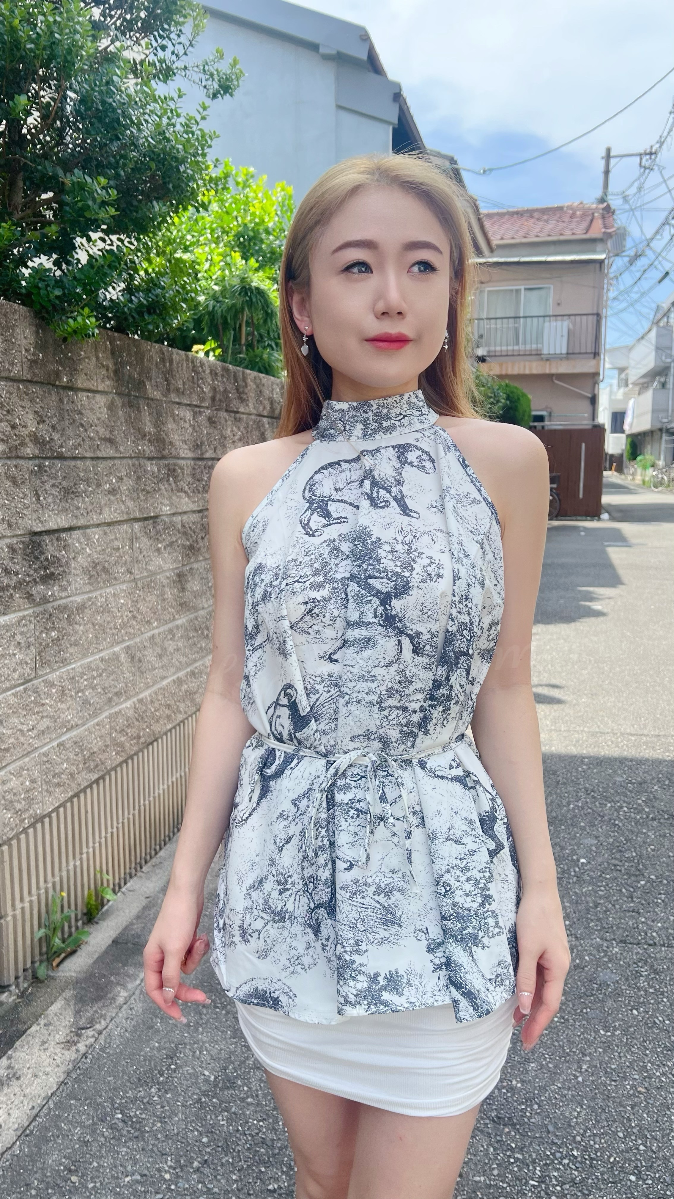 貴氣動物園print絲質掛頸上身