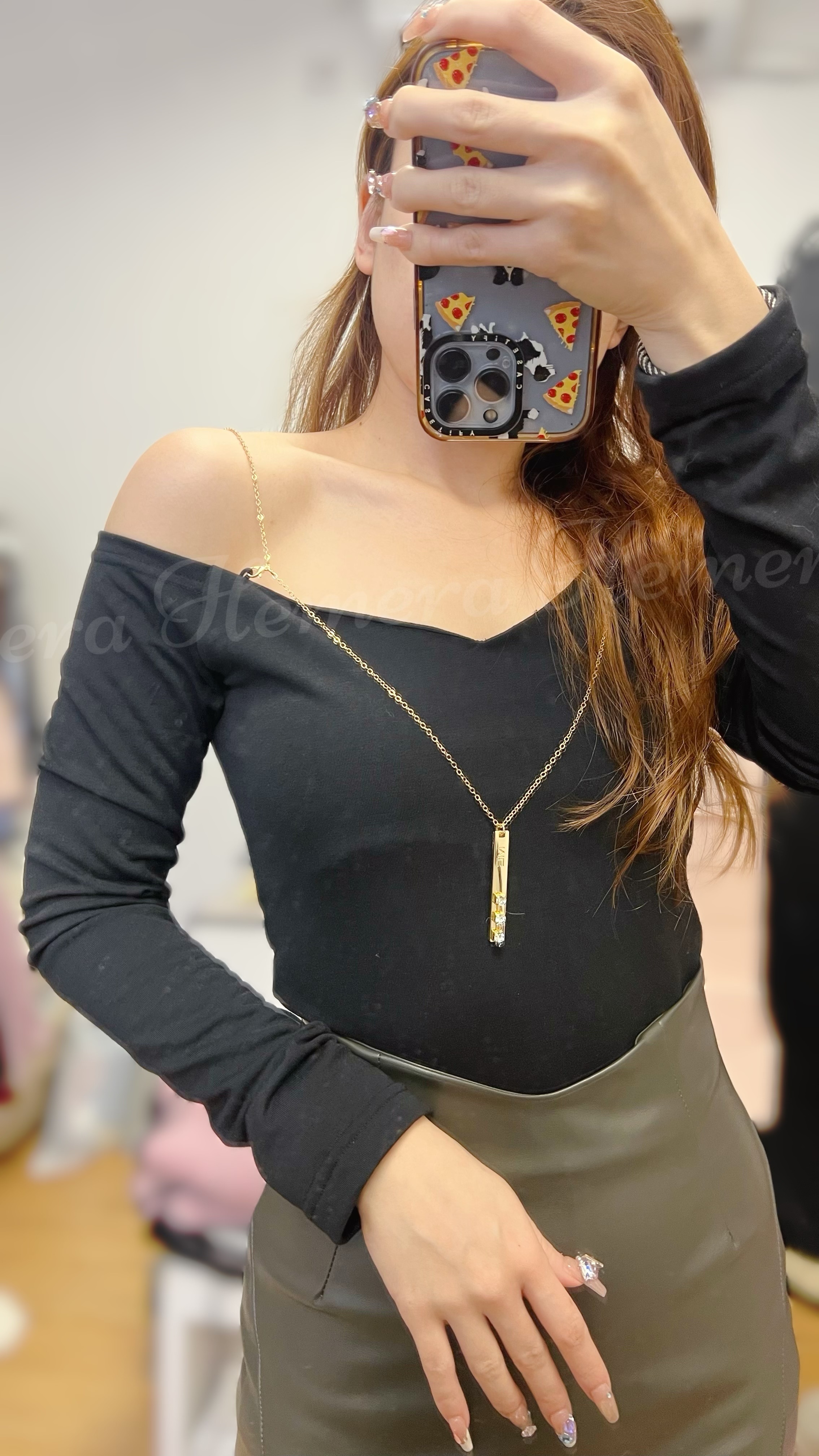 金鏈肩帶一字膊上身