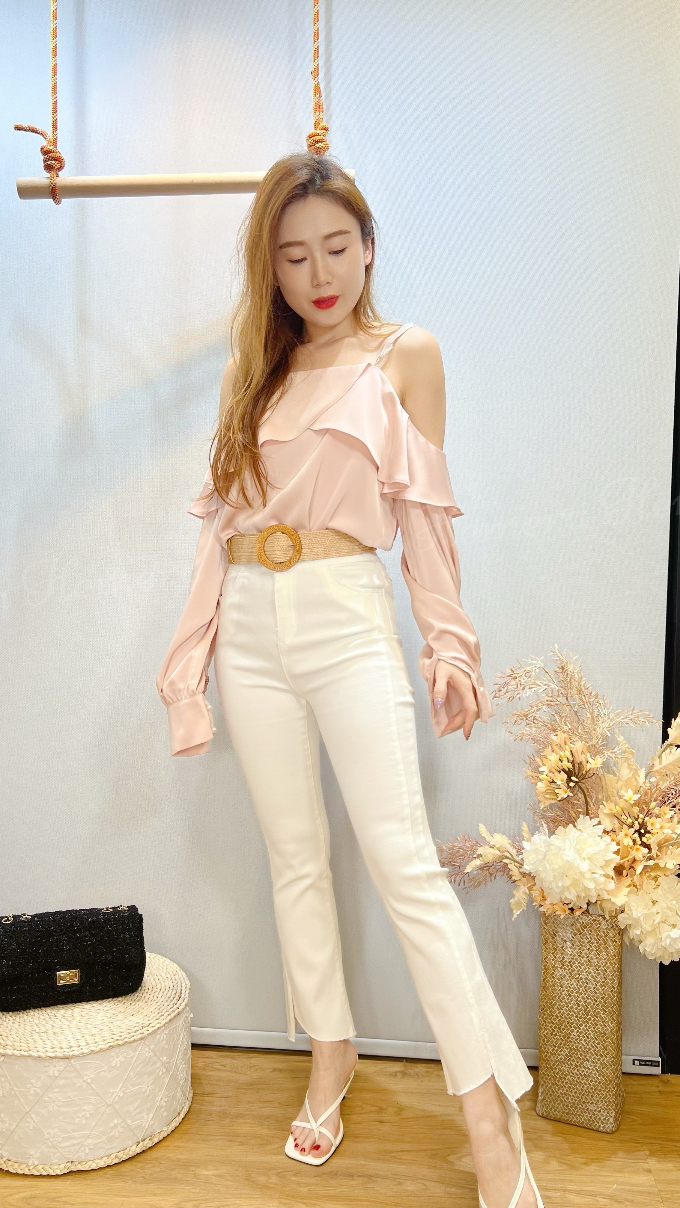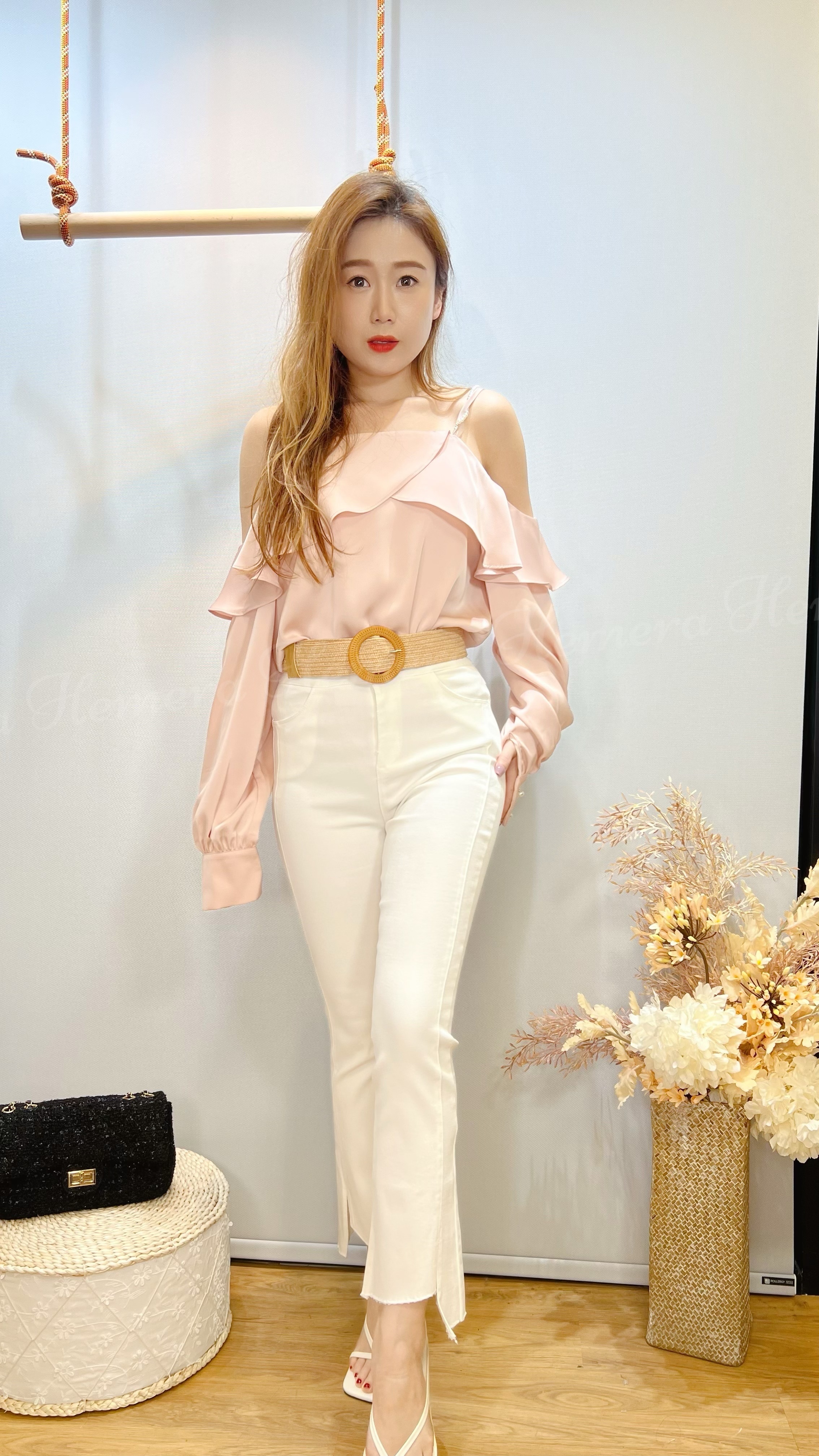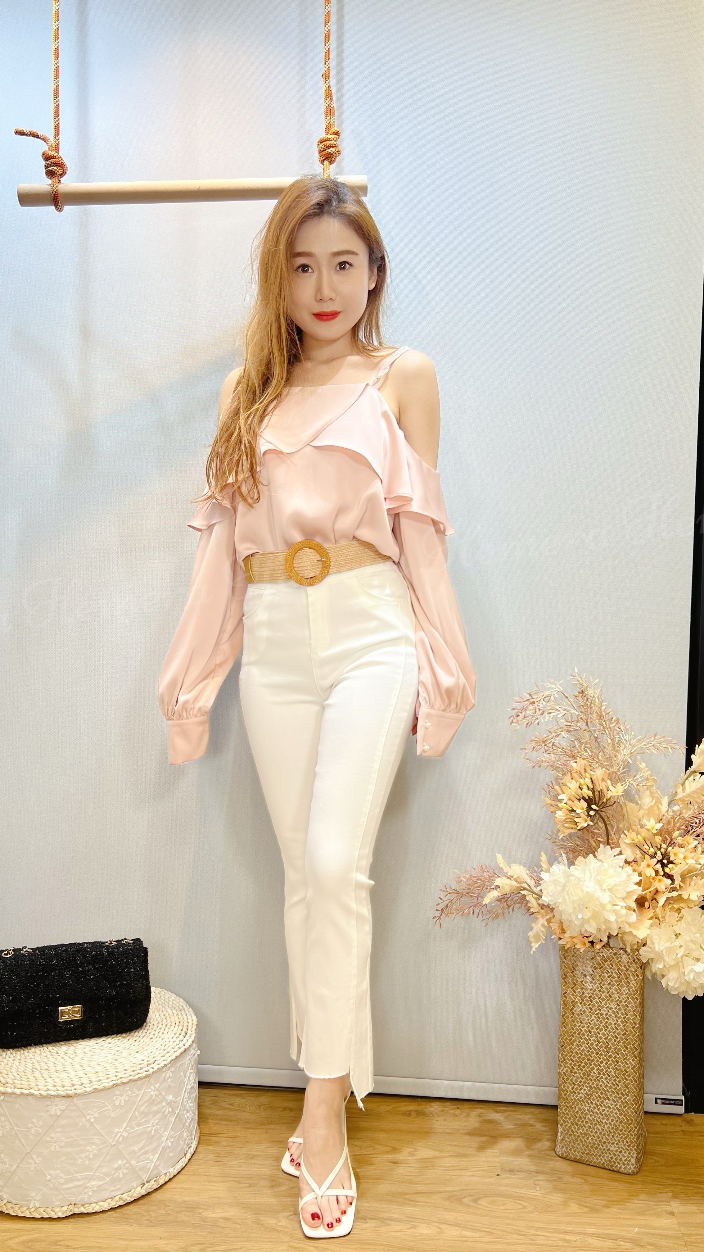 仿絲女神顯瘦ruffles珠珠帶上身