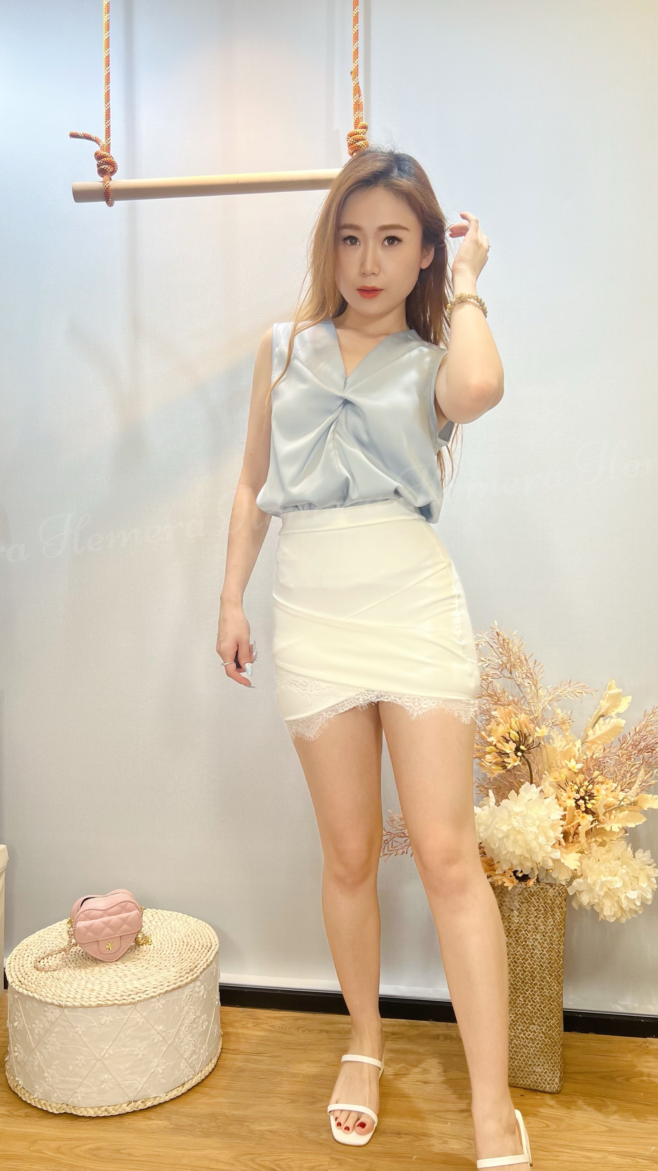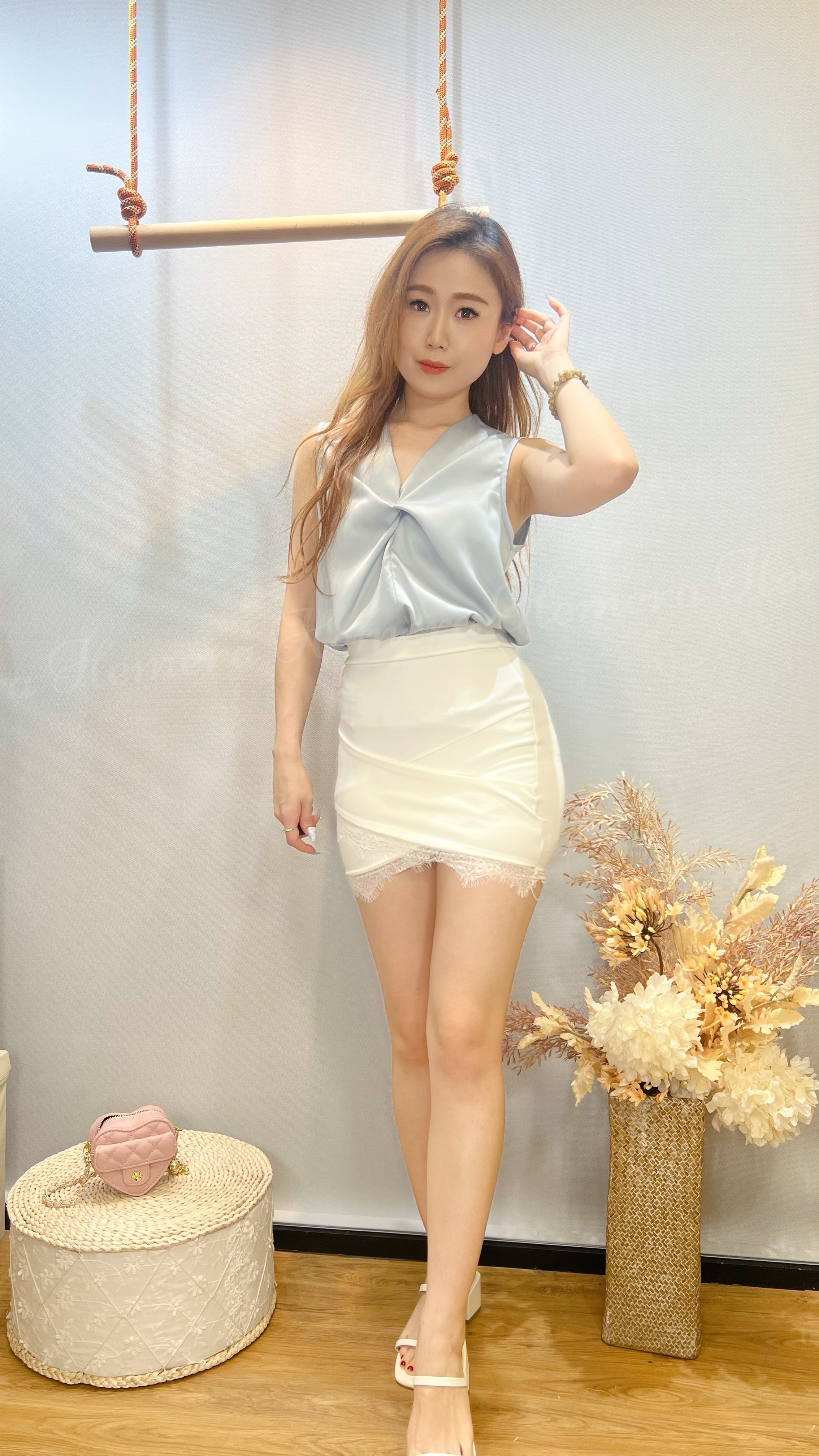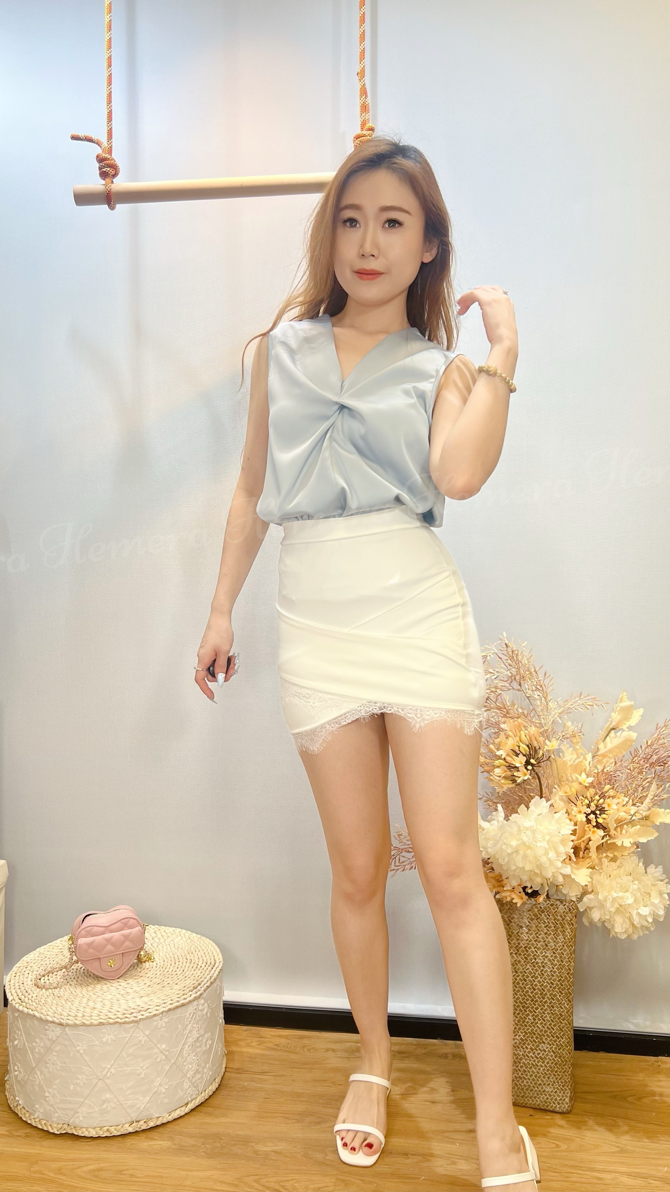 TP24W0436 仿絲珠光扭結背心