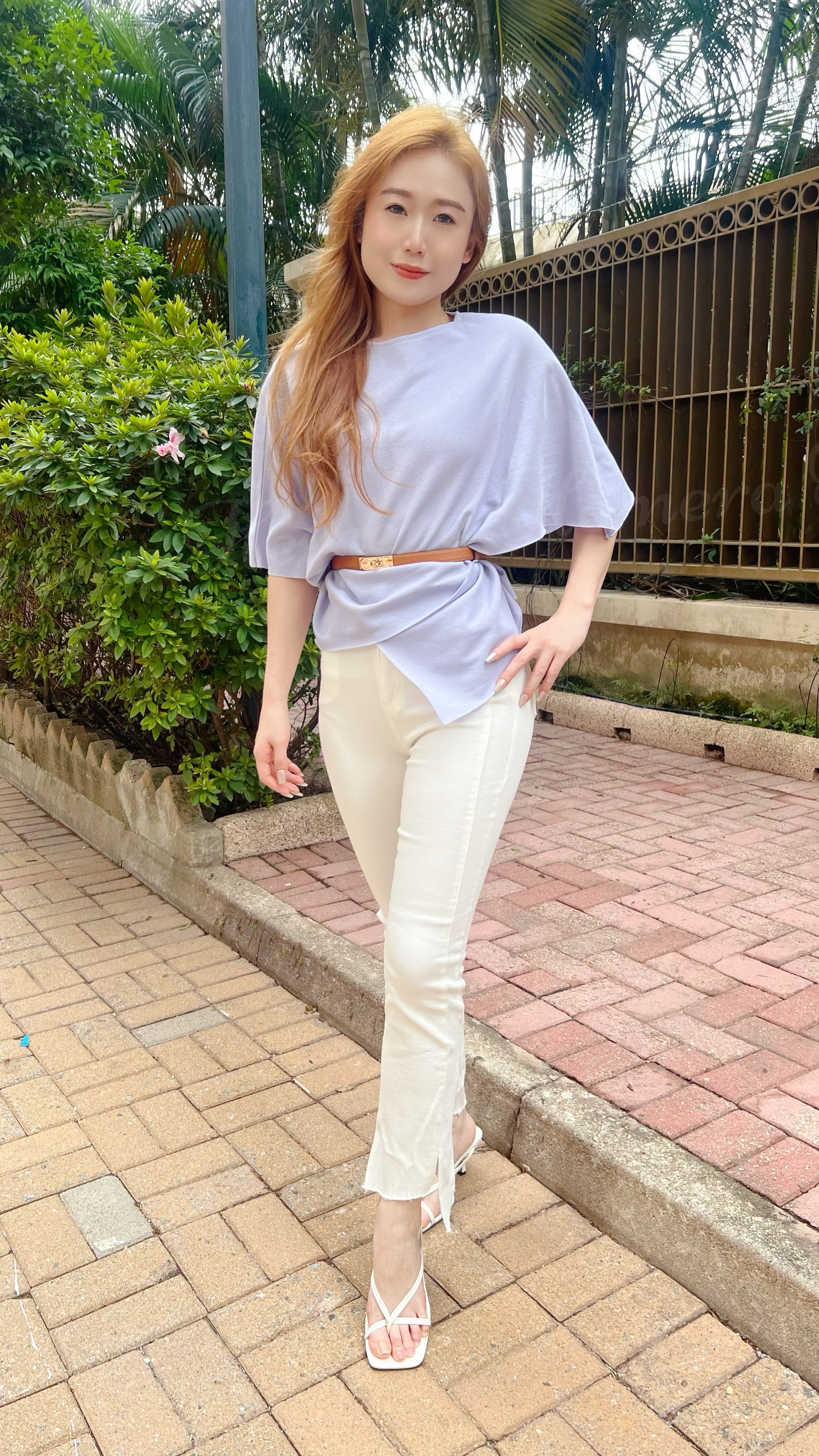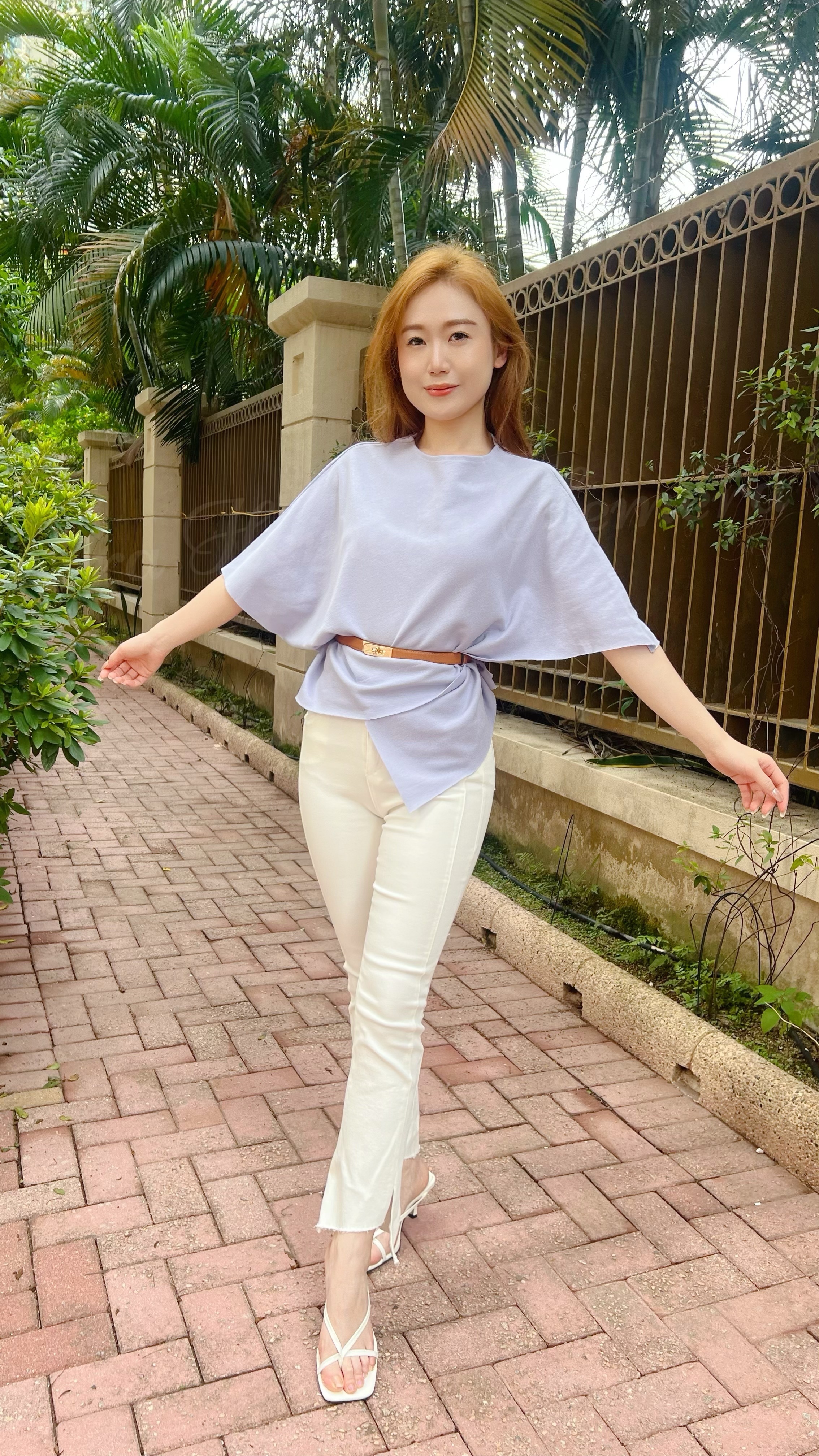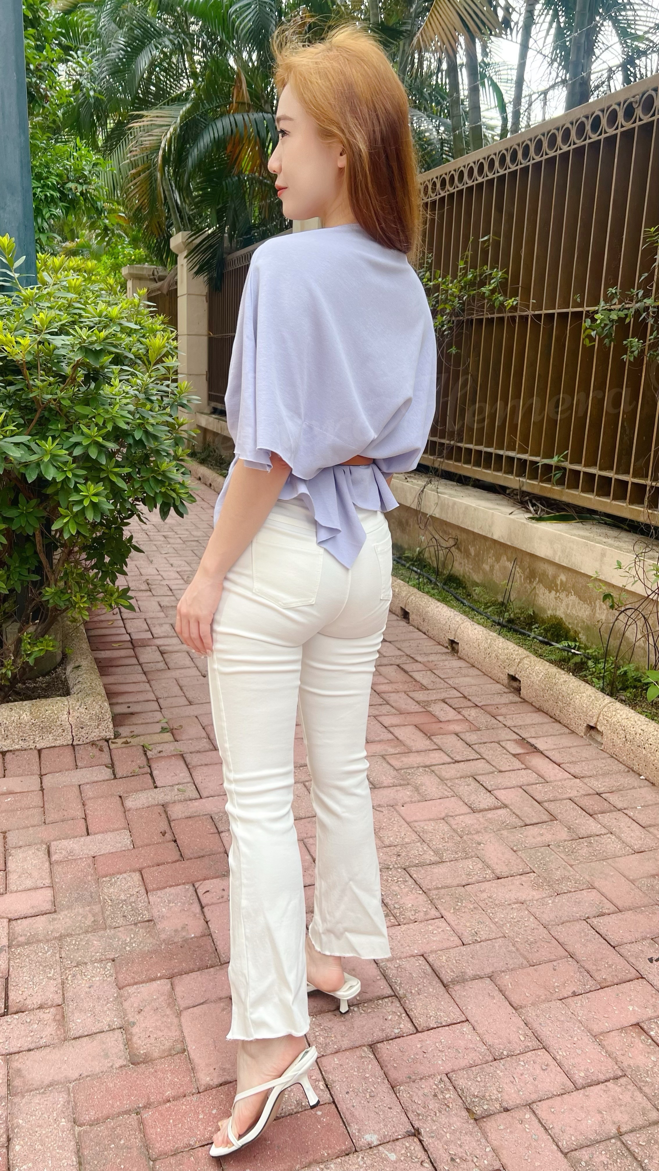 浪漫迷人紫顯瘦蝙蝠蝠不規則下擺上身