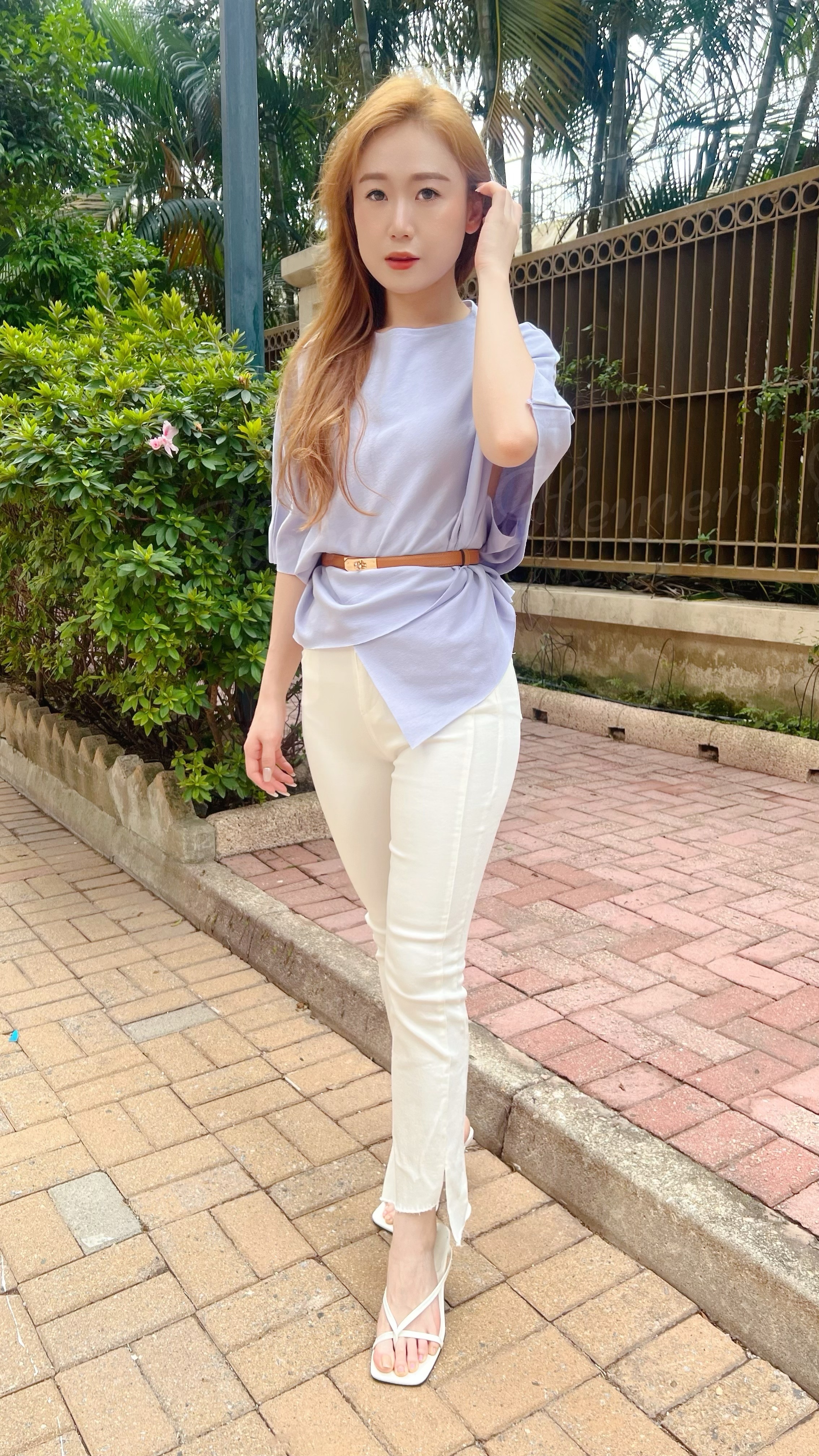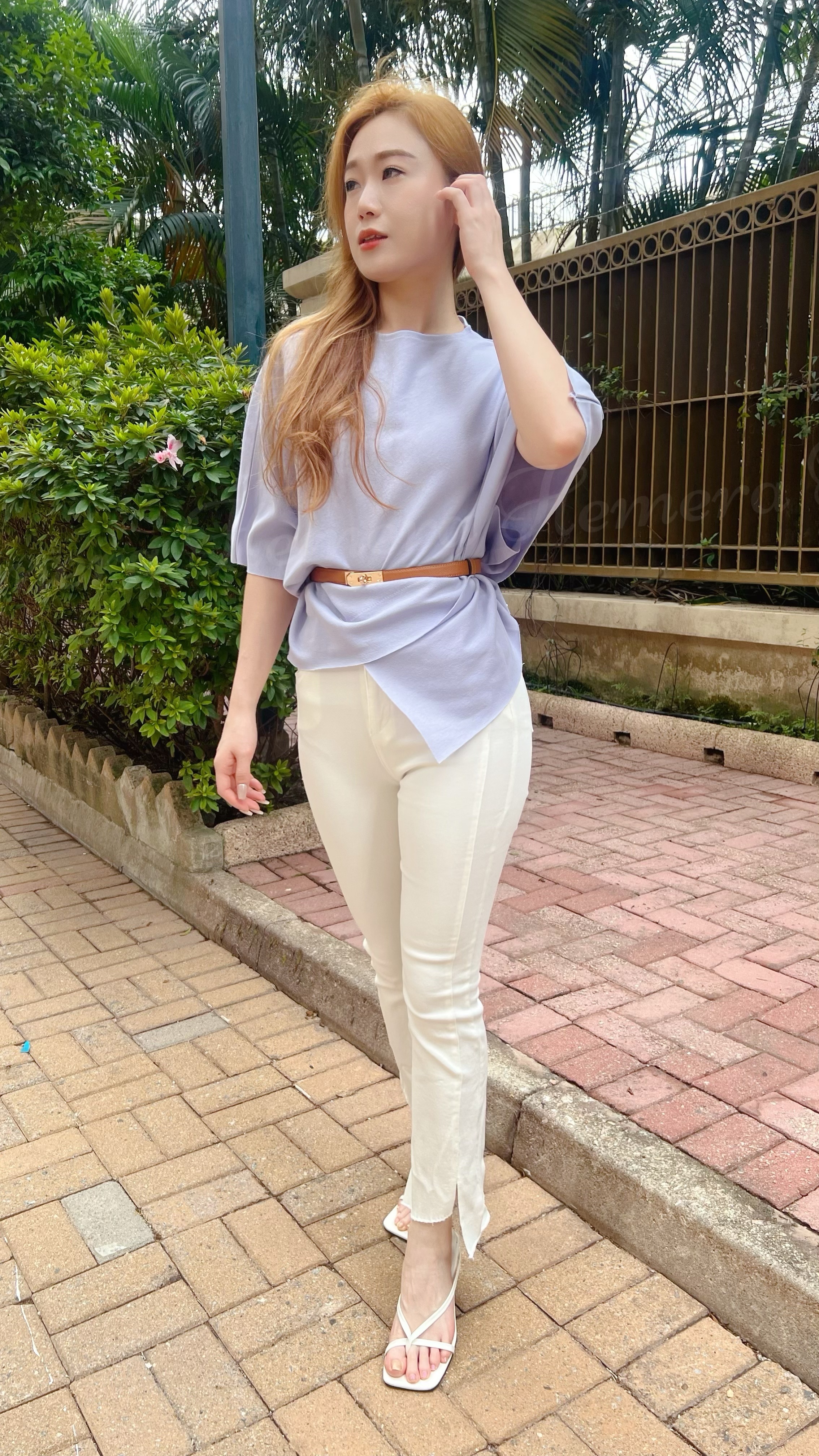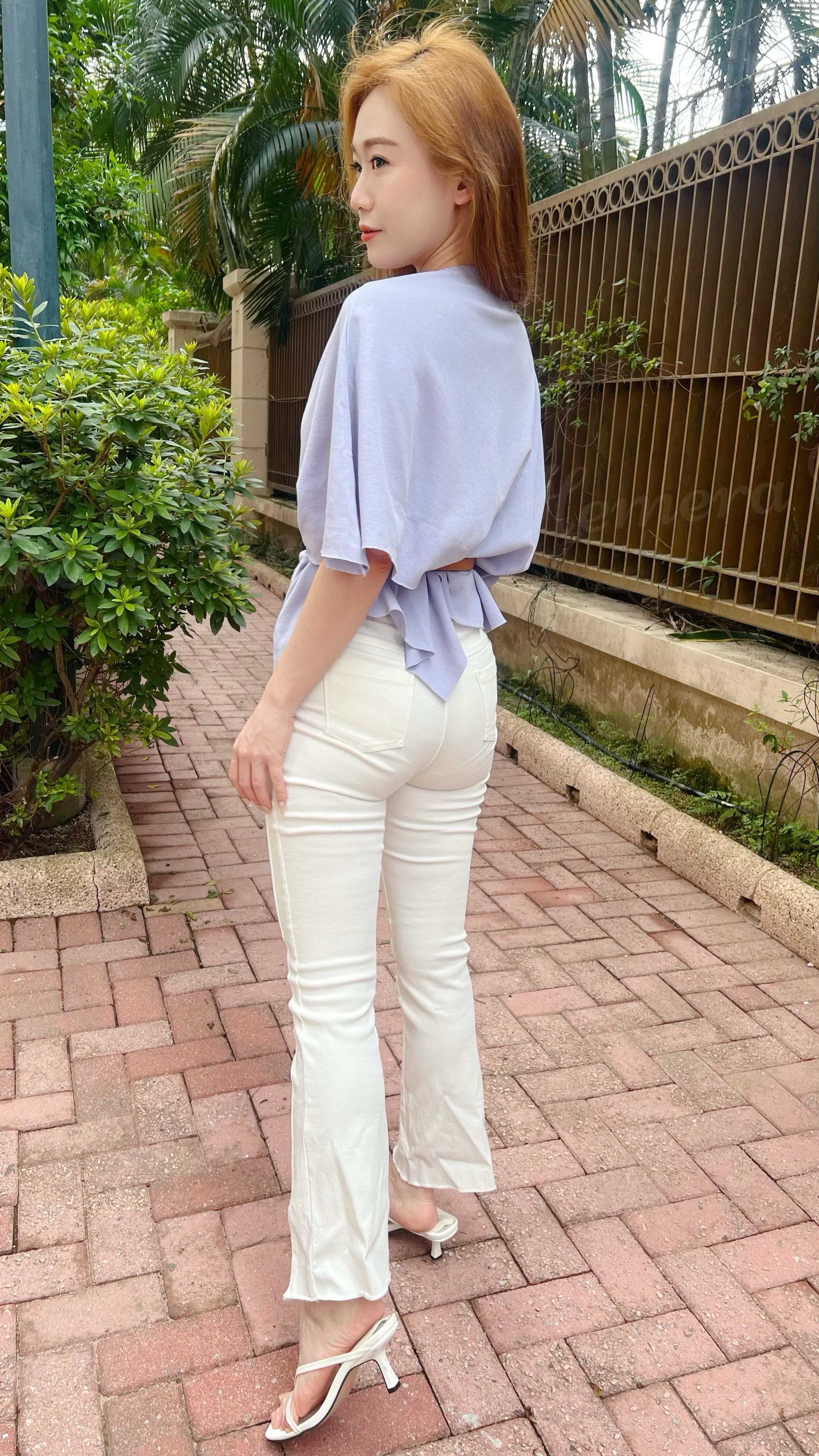 浪漫迷人紫顯瘦蝙蝠蝠不規則下擺上身